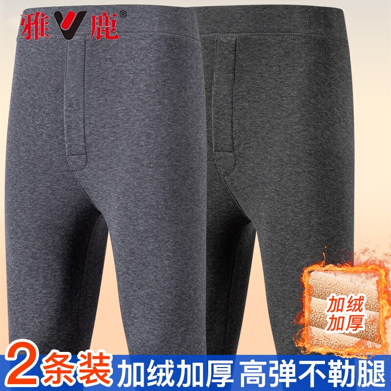 雅鹿加绒加厚保暖裤男款高腰驼绒秋裤防寒打底棉裤男士大码秋冬季