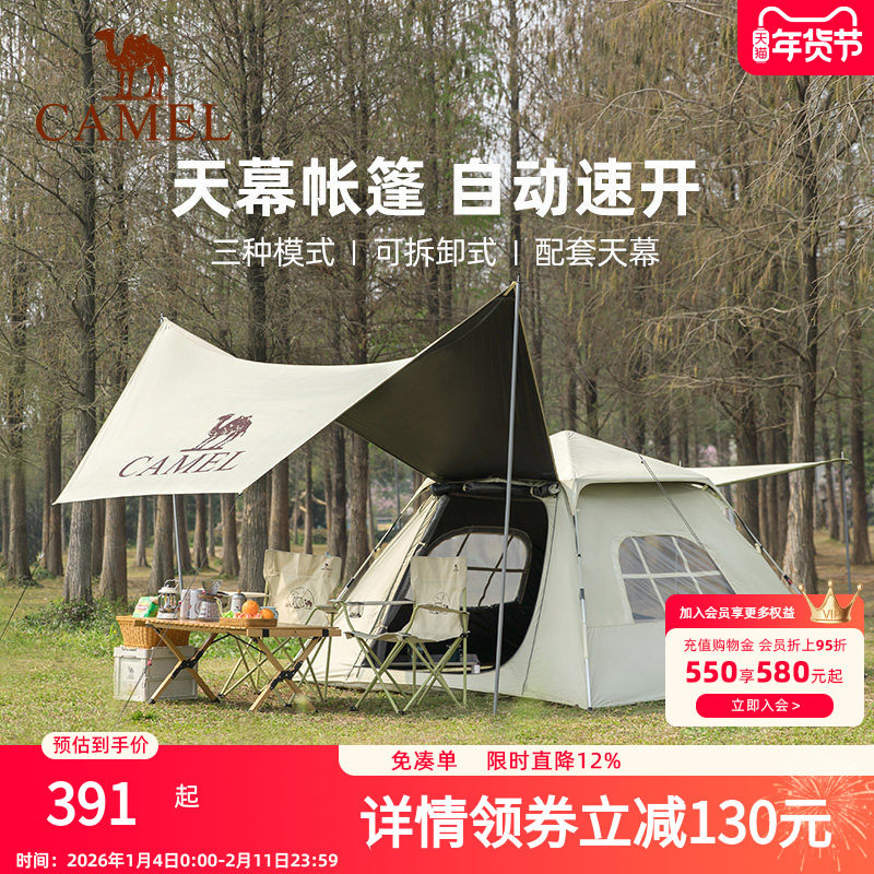 骆驼户外天幕帐篷一体便捷式折叠防雨野餐露营野营野餐装备全套