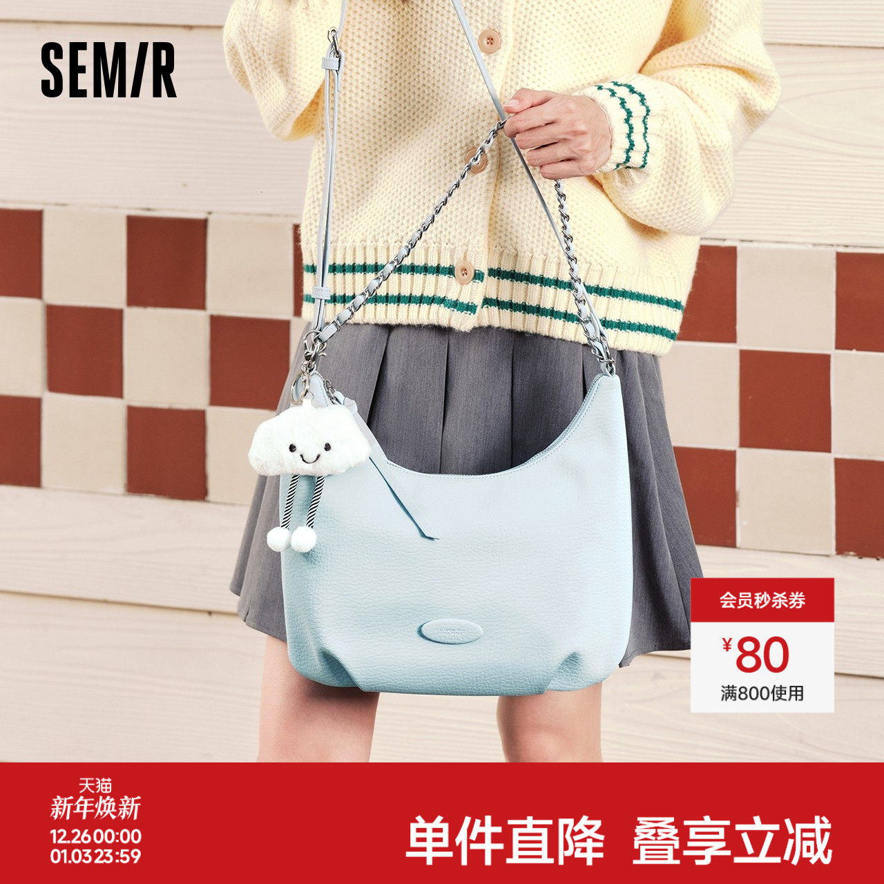 森马包包斜挎包女2024新款单肩包手提包可爱软糯饺子包时尚链条包