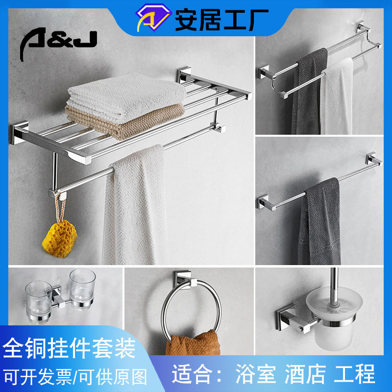 浴室挂件全铜毛巾架套装卫生间卫浴五金厕所浴巾架壁挂置物架厂家
