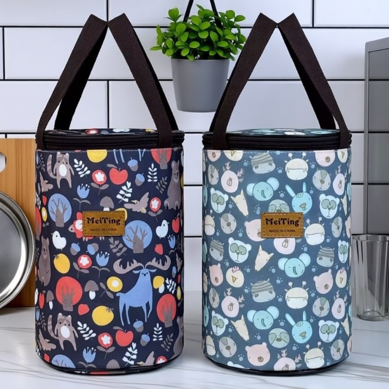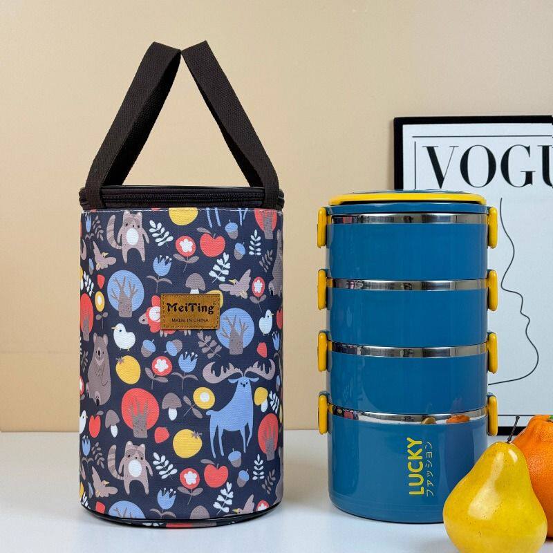 保温饭盒袋子手提饭兜铝箔加厚防水学生上班族圆形饭桶便携便当包