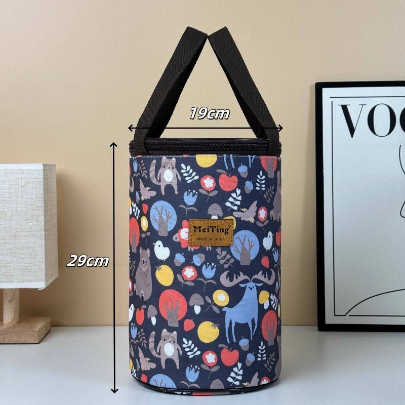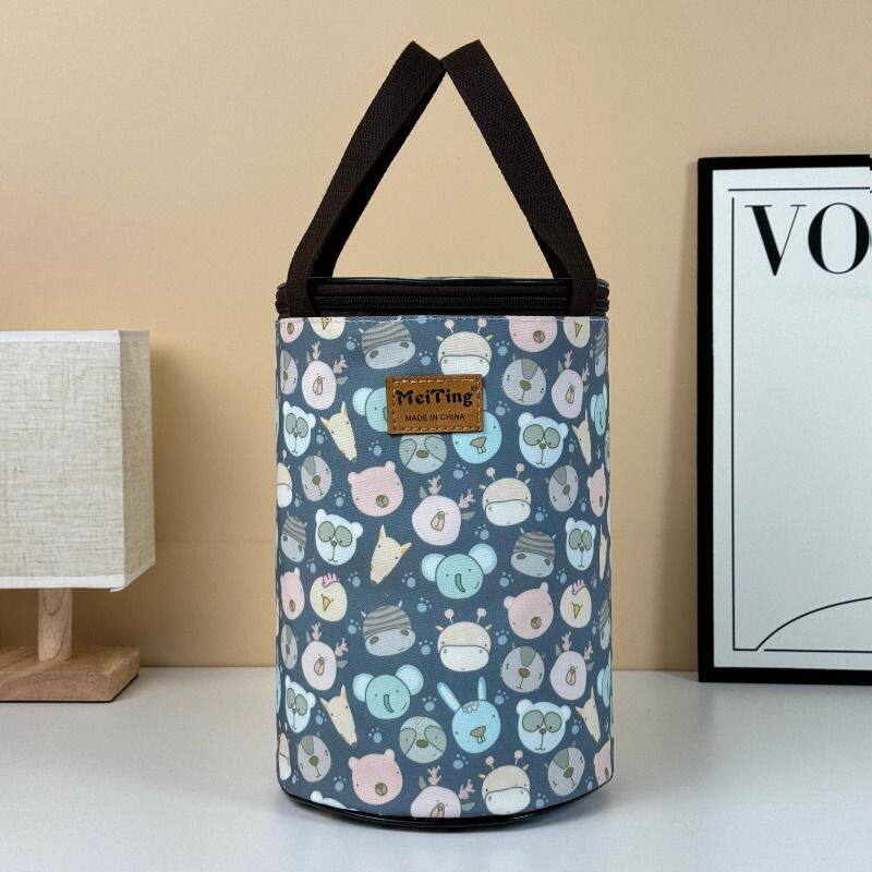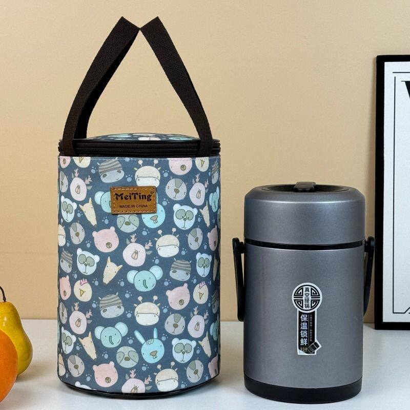 加厚铝箔大容量防水圆筒手提饭盒袋闷烧杯饭盒桶保温包圆形便当包