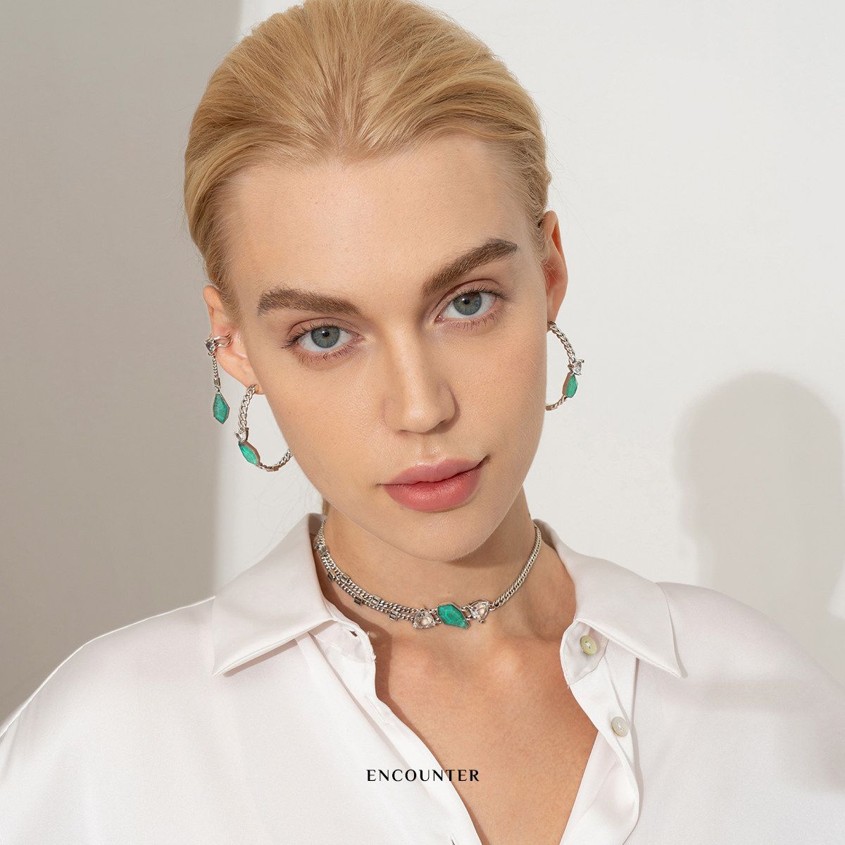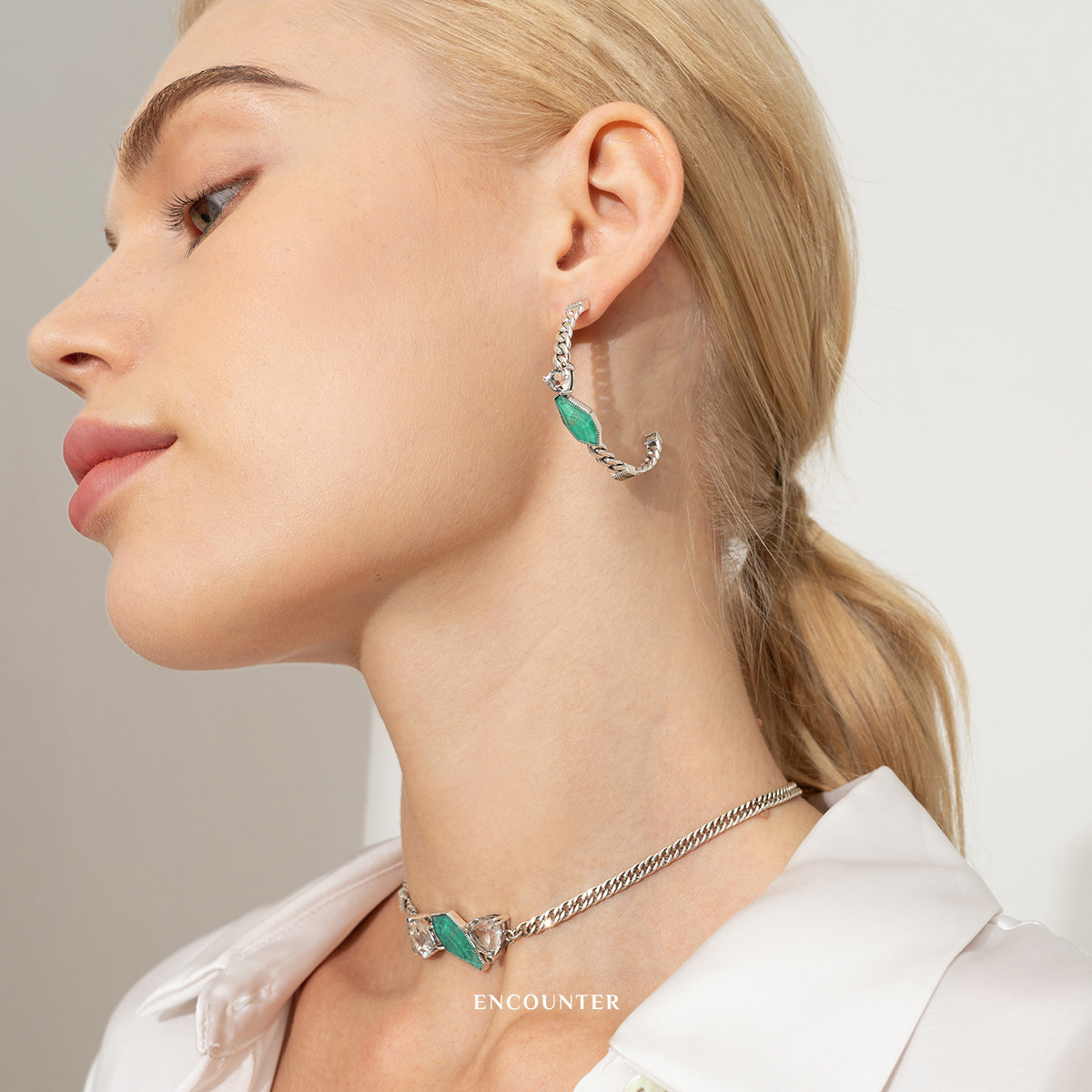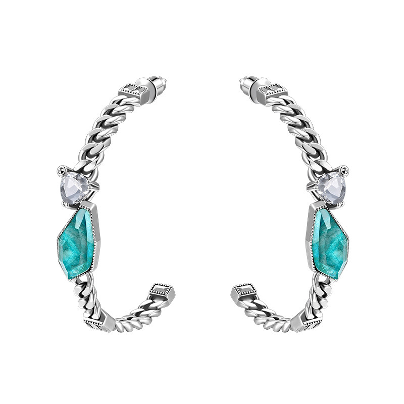MGS/曼古银邂逅系列小众设计感高级冷性风凤凰石拼白水晶耳环女潮