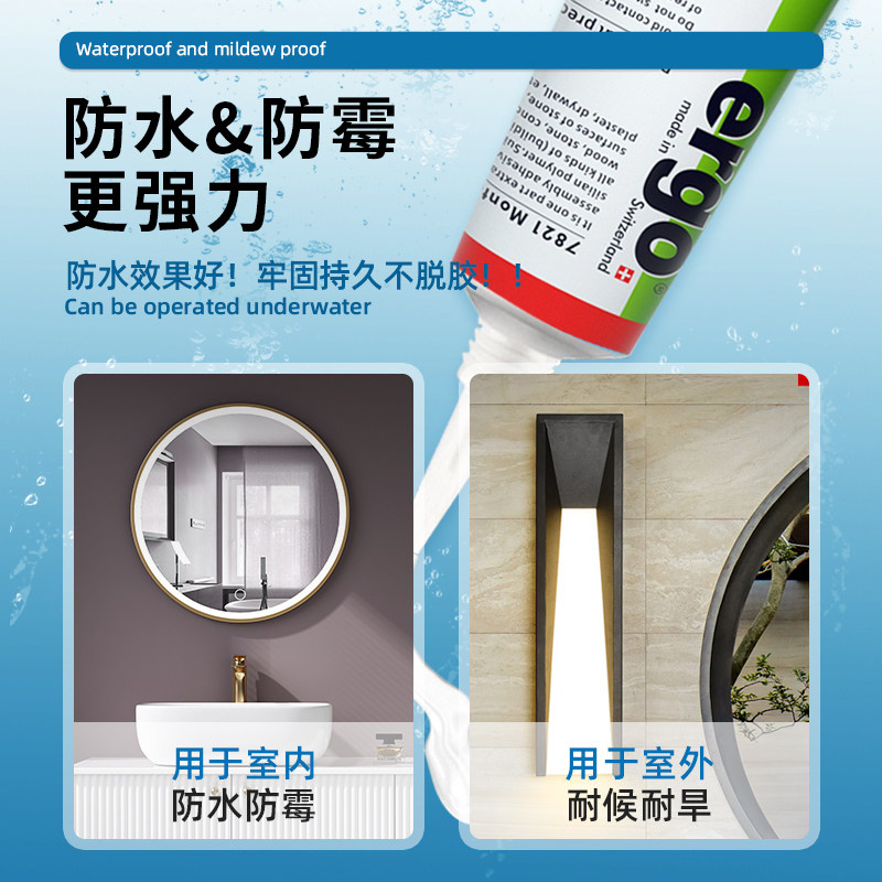 免钉胶瑞士品牌多功能贴墙专用粘水泥墙白灰墙瓷砖墙面镜子金属地板浴室踢脚线卫生间防水免打孔粘合剂胶水