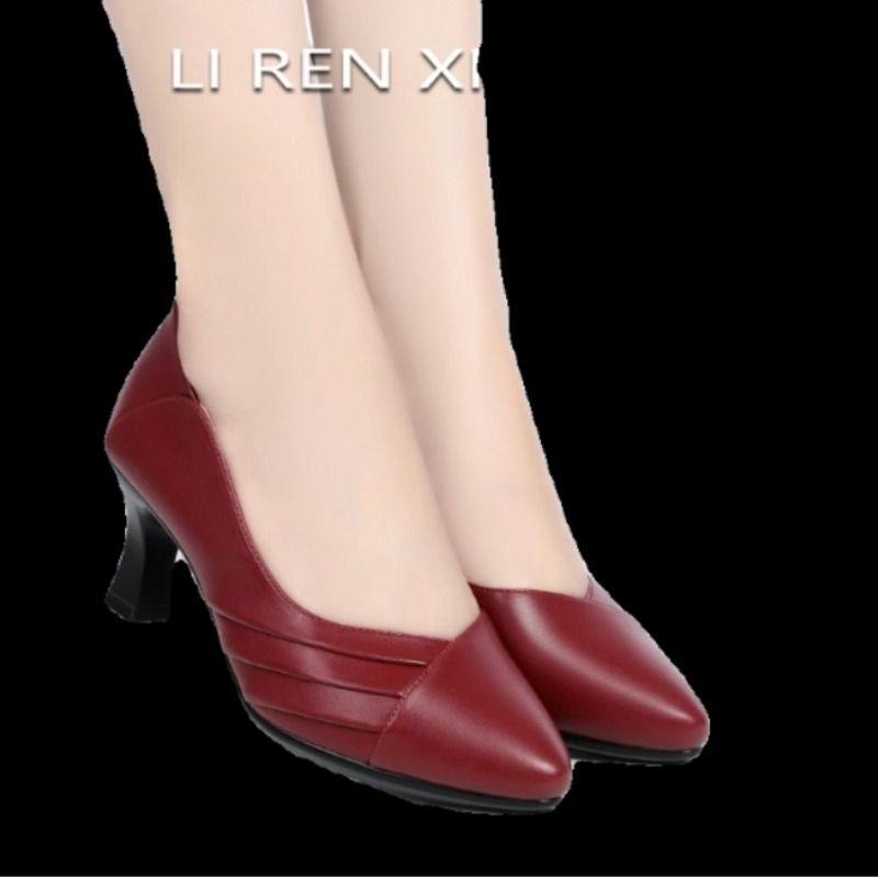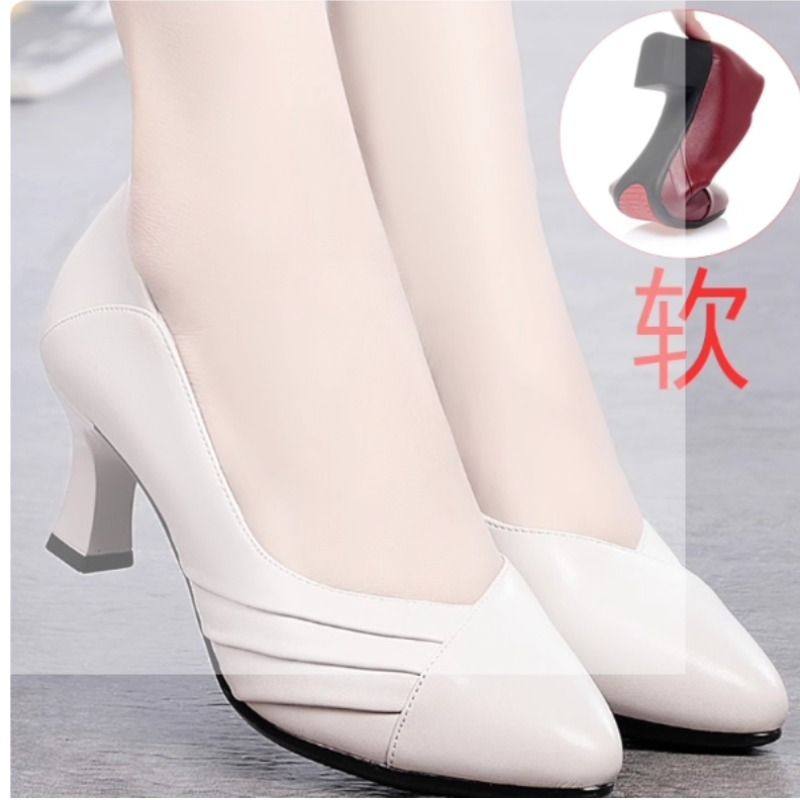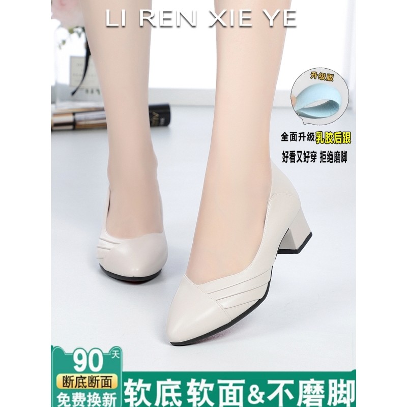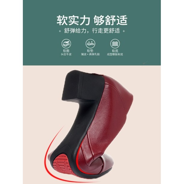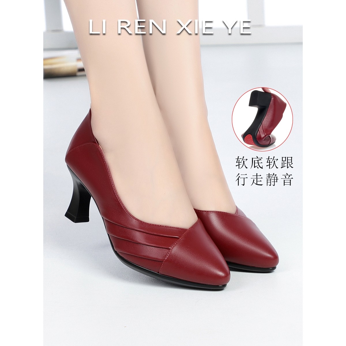 他她女孩春秋真皮妈妈鞋皮鞋软底高跟细跟工作浅口中跟中年单鞋女