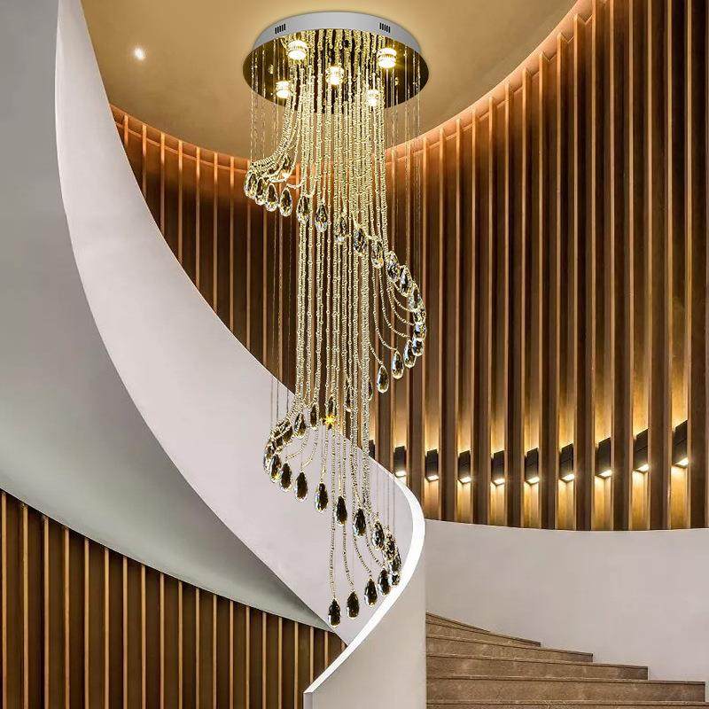 复式楼梯客厅吊灯 酒店大堂工程长吊灯 别墅楼中楼客厅吊线水晶灯