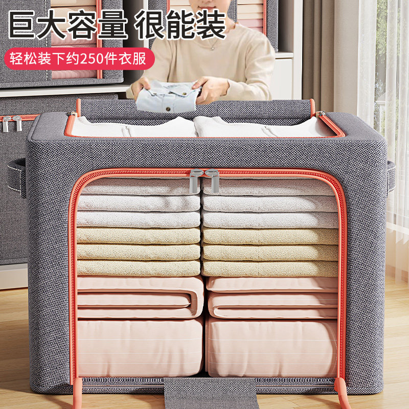 2个装衣服收纳箱棉麻布艺整理换季新神器折叠衣物整理箱被子百纳
