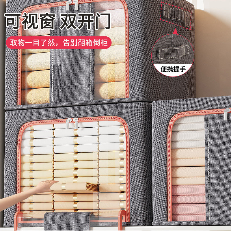 佳帮手衣服收纳箱家用装衣物被子百纳箱布艺可视窗衣柜专用整理箱