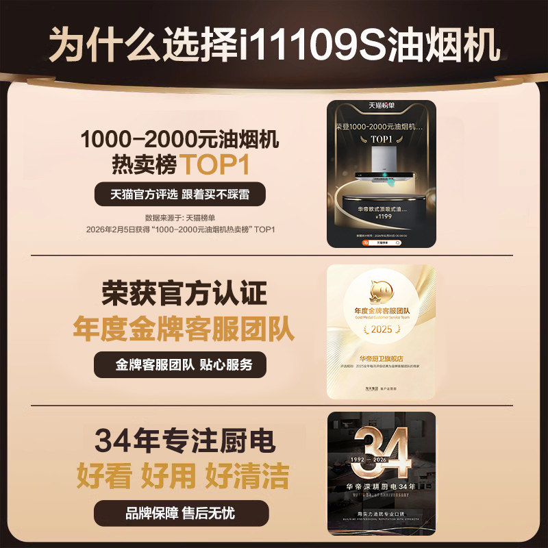 华帝i11109抽油烟机顶吸式家用厨房大吸力吸油烟机官方旗舰店正品