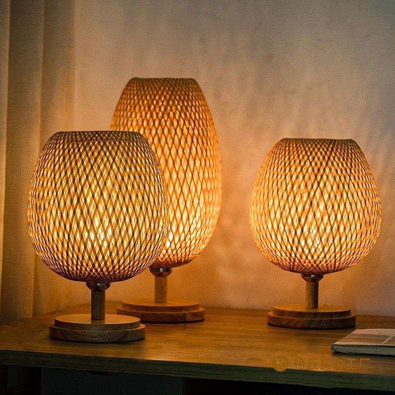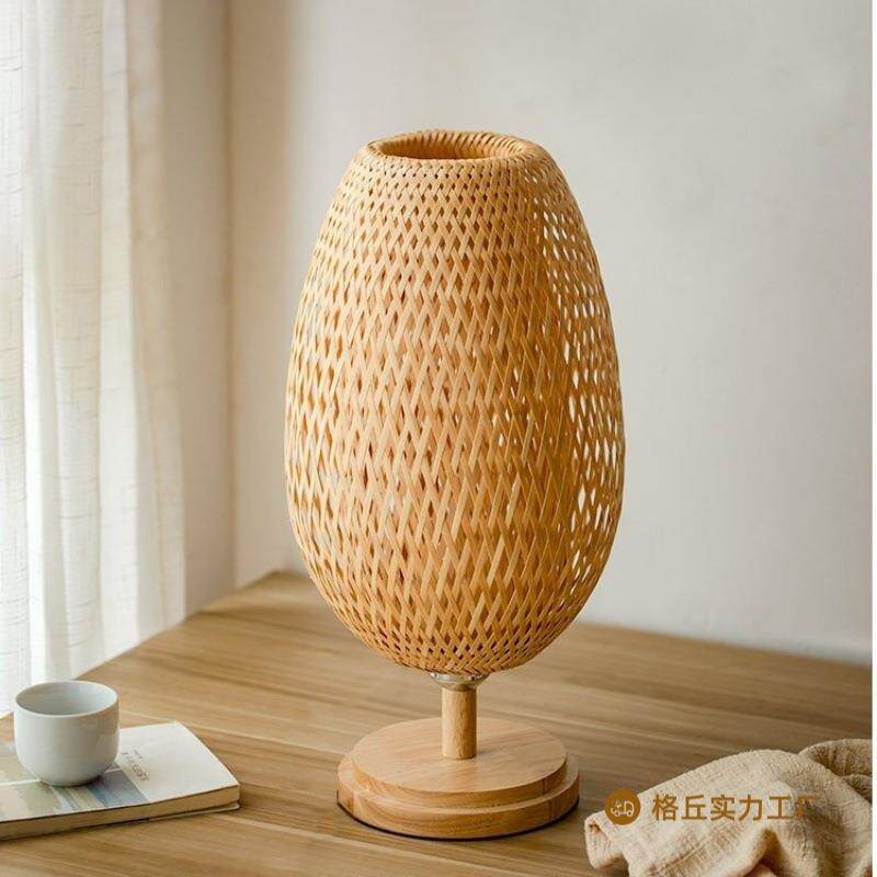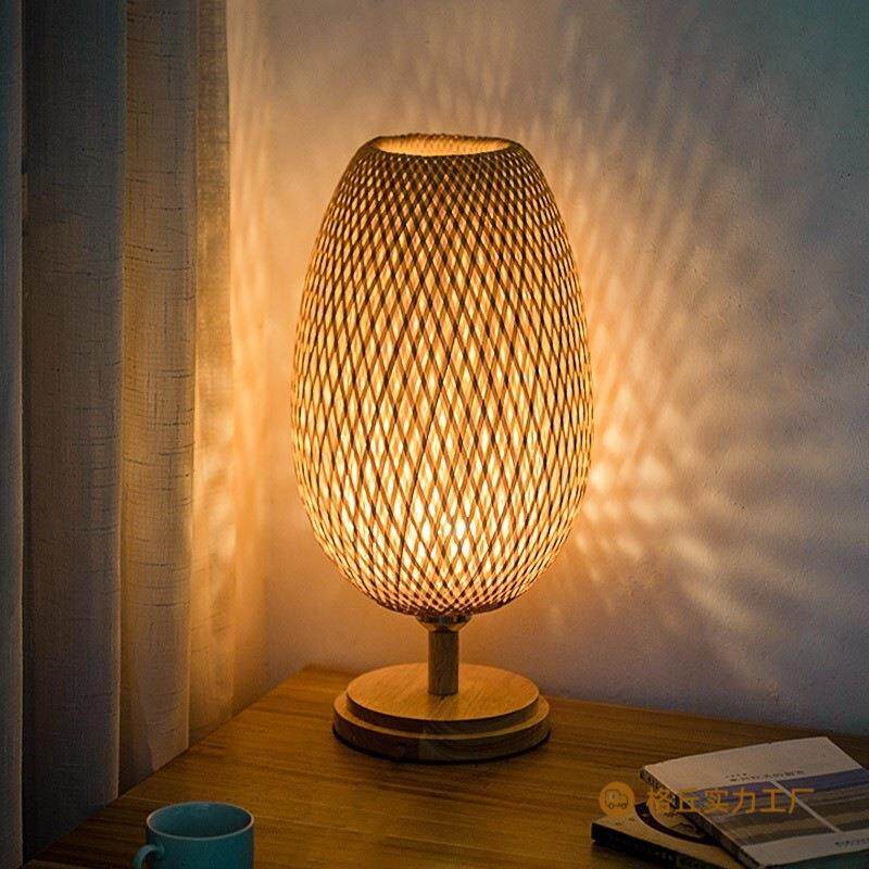 台灯东南亚护眼柳编 中国卧室客厅茶室床头新中式大灯竹编