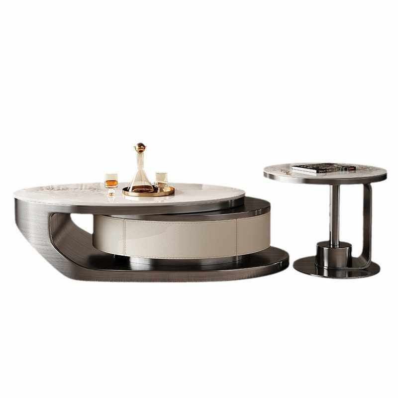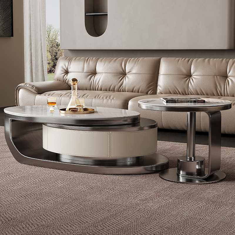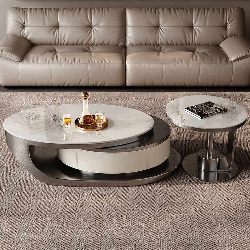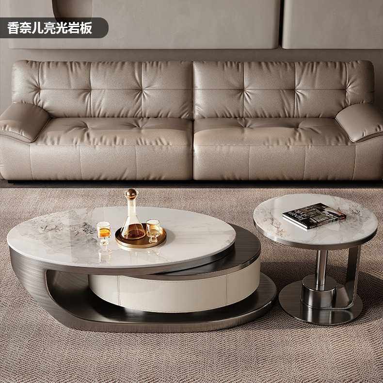 岩板茶几办公室轻奢现代家用客厅意式极简侘寂风不锈钢微晶石茶台