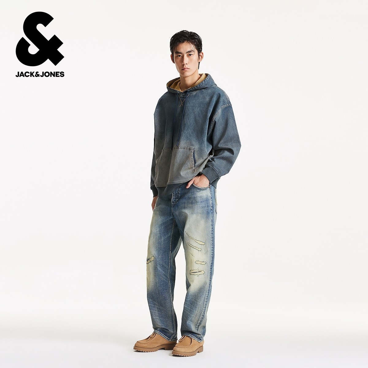 杰克琼斯男装秋冬新款时尚潮流做旧水洗oversize连帽卫衣
