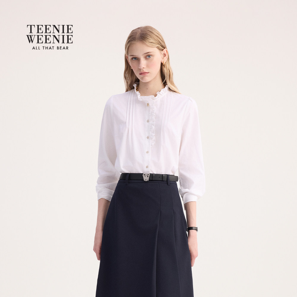 TeenieWeenie小熊奥莱衬衫2025秋季新简约优雅少女感木耳边领衬衣