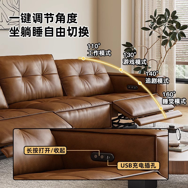 左右沙发政府补贴真皮电动客厅功能棕色2025新款官方旗舰店6055