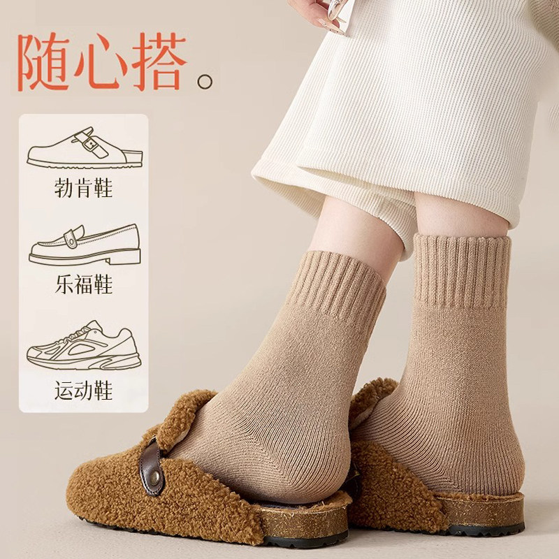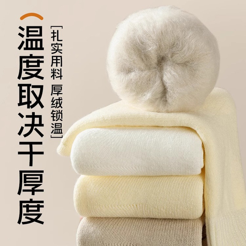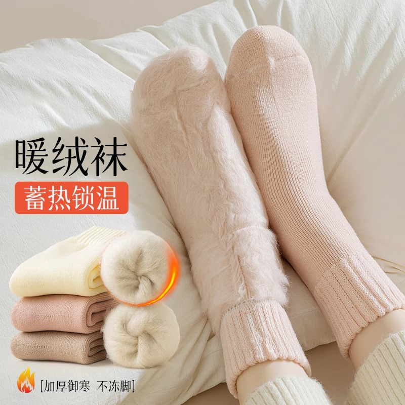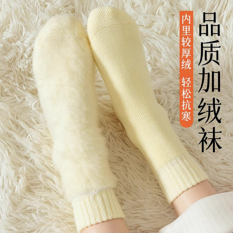 加绒加厚秋冬中筒袜保暖抗寒居家仿羊毛雪地袜睡觉地板月子袜长袜