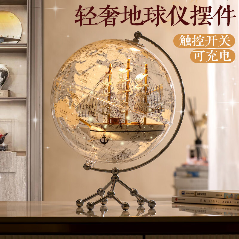 透明地球仪摆件轻奢高档高级感客厅玄关酒柜柜子桌面摆设卧室可发光小夜灯台灯家居乔迁装饰男孩女孩生日礼物