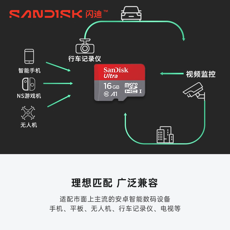 闪迪tf卡16g内存卡高速Micro sd卡车载监控行车记录仪手机内存卡