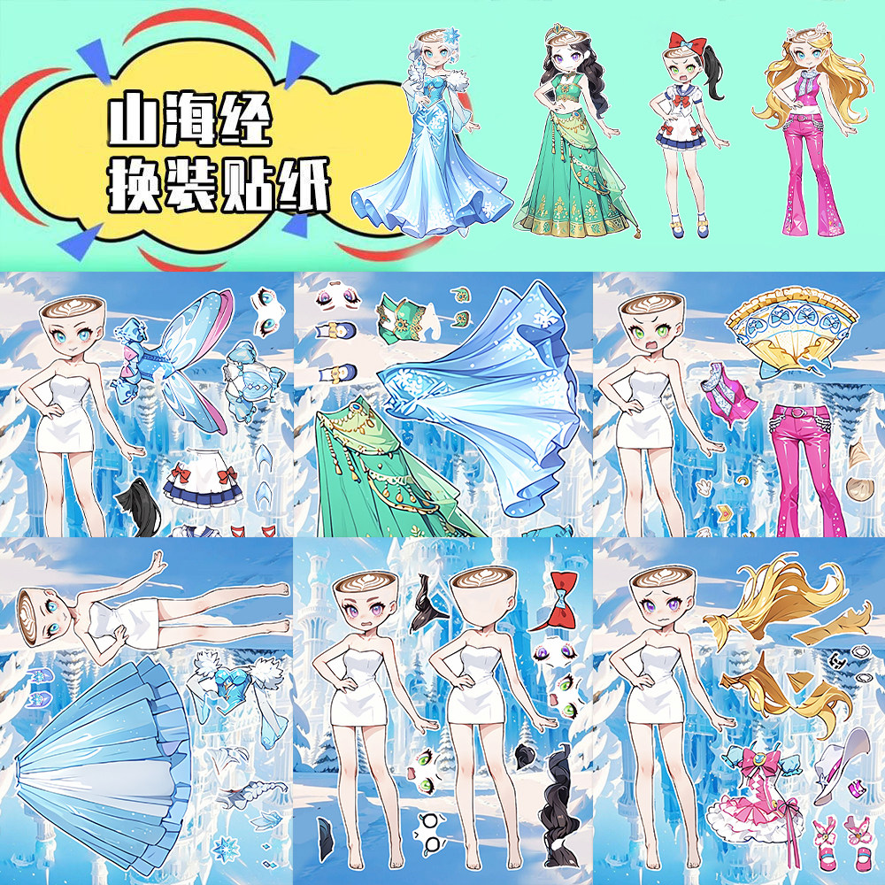 华丽精美山海经冰雪王国换装贴纸儿童解压益智创意手工diy贴画