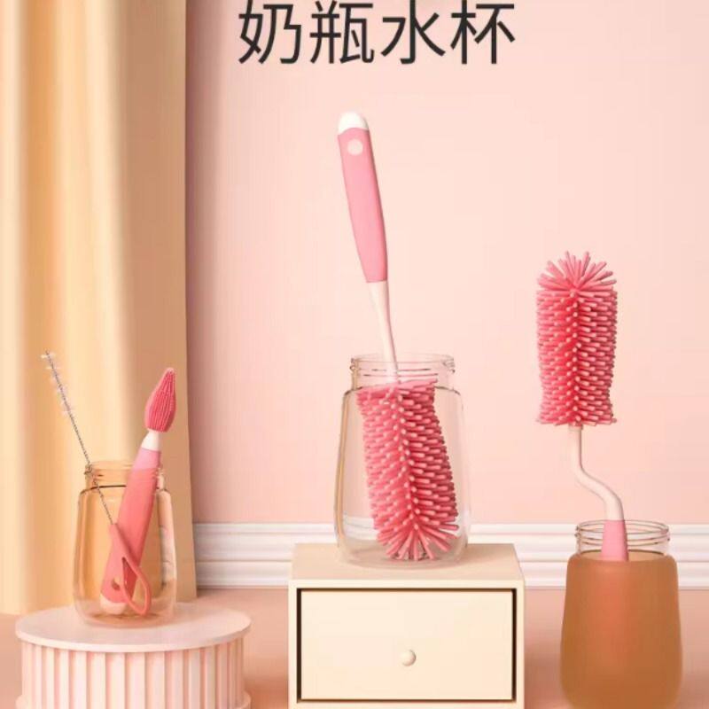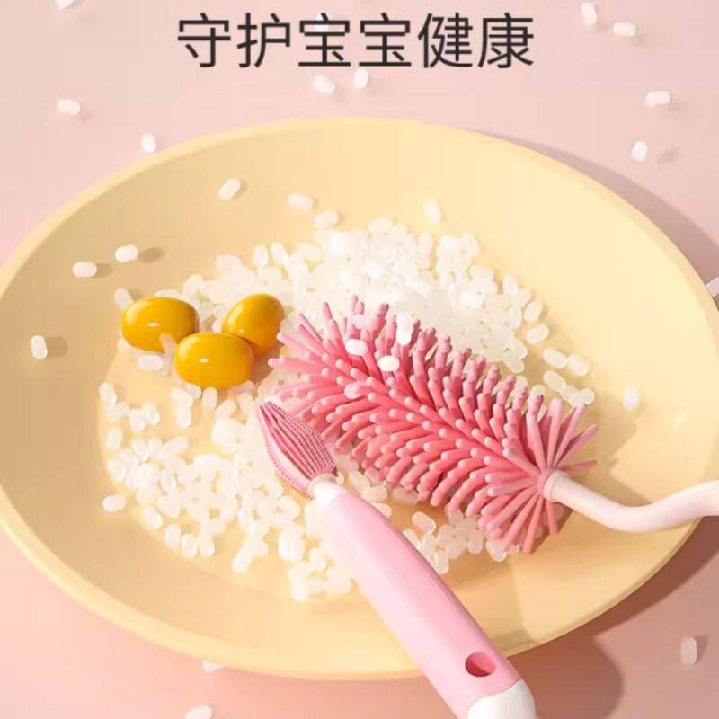 奶瓶刷旋转清洗刷硅胶手感婴儿洗奶瓶涮子套装清洁吸管刷奶嘴刷杯