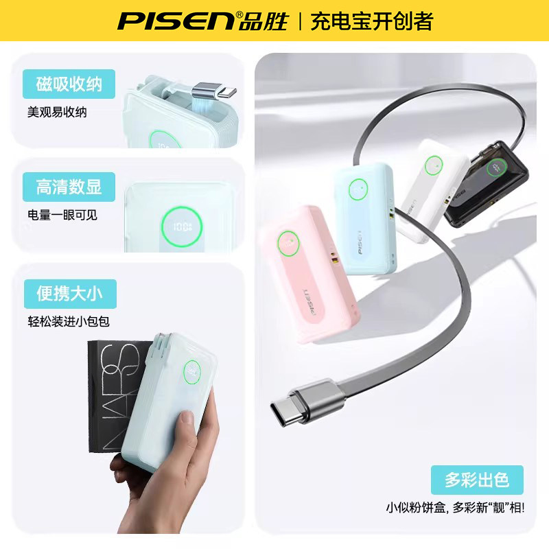 3C认证可上飞机【政府补贴15%】品胜2026新款彩豆3充电宝快充大容量超薄小巧便携带线移动电源适用苹果17小米
