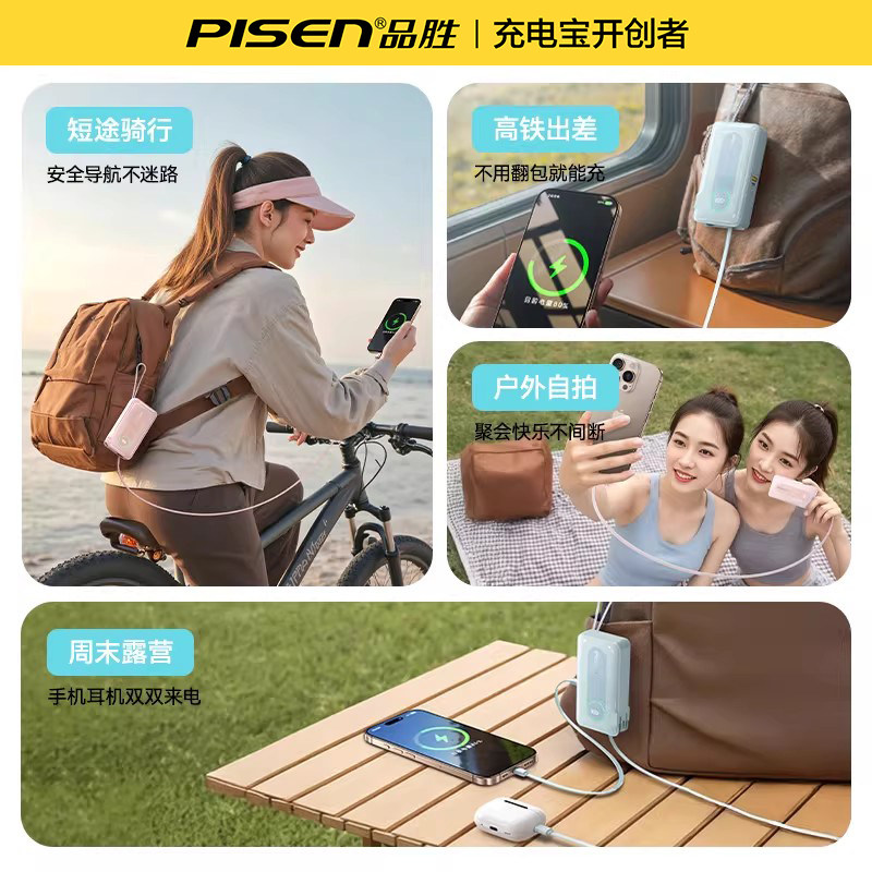 【3C认证充电宝】品胜胶囊充电宝2025新款自带支架小巧便携快充官方旗舰店正品17适用iPhone16华为苹果15