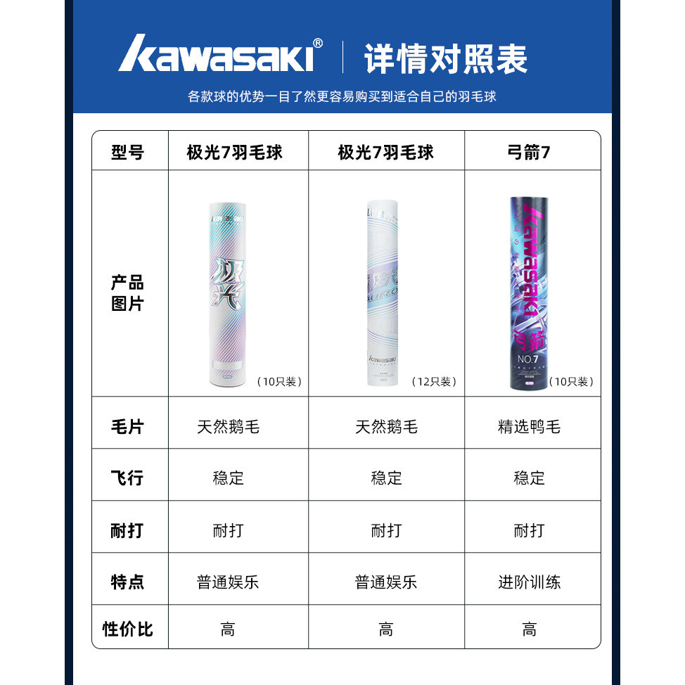 川崎弓箭7号羽毛球正品旗舰店耐打鸭毛俱乐部训练专业比赛飞行