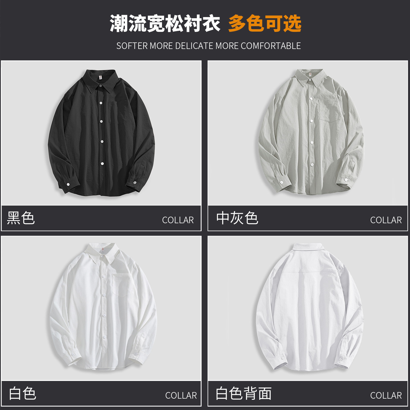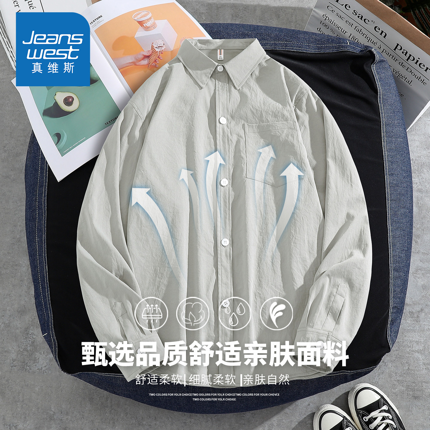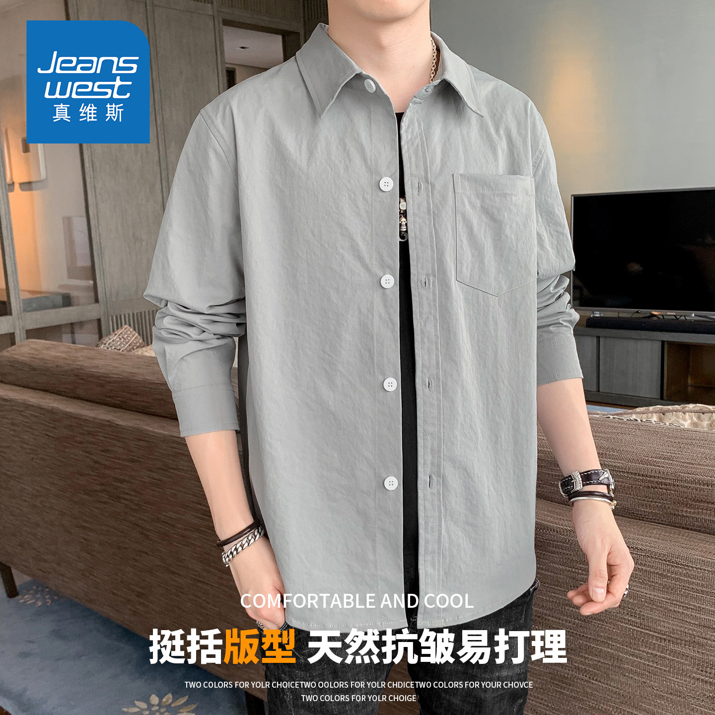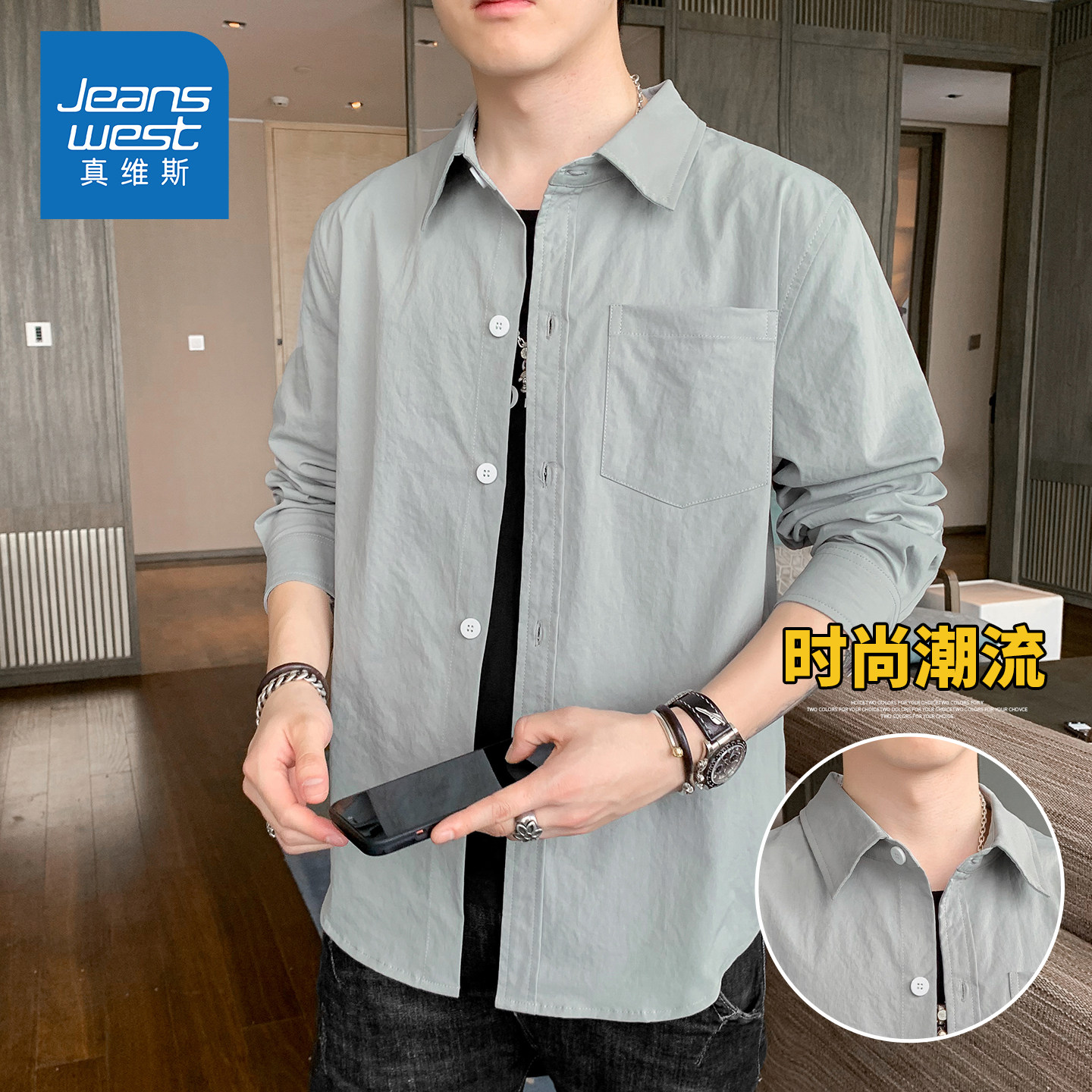 KZH真维斯港风长袖衬衫男秋季新款宽松简约上衣青年潮流休闲外套