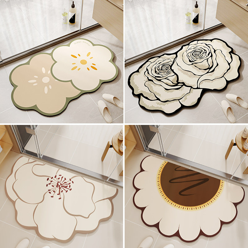 卫生间地垫浴室门口脚垫厕所防水防摔硅藻泥吸水垫防滑垫法式厨房