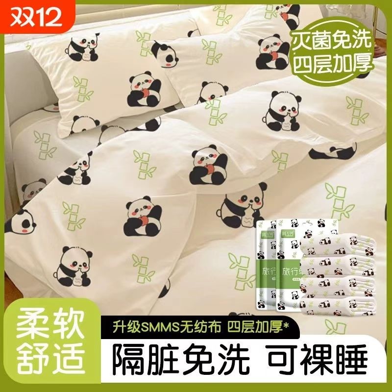 一次性床笠四件套床上床品床单被罩枕套加厚隔脏非纯棉旅行用品