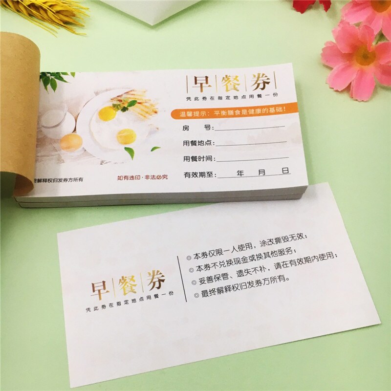酒店早餐券定制彩色餐票定做食堂饭票宾馆自助用餐券通用纸质印刷