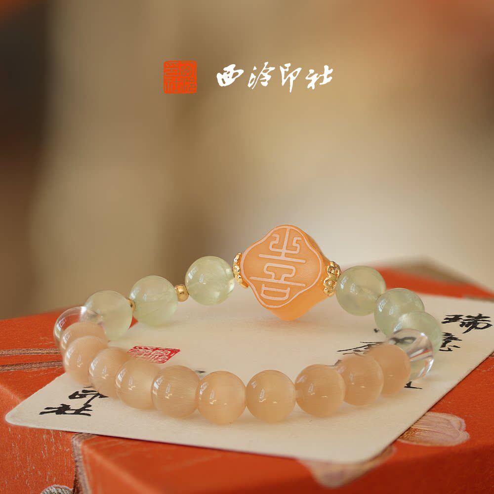 西泠印社海棠系列国潮印章手串桃花粉手链穿戴招桃花闺蜜国风生日情侣手链生日礼物企业定制伴手礼节日送礼