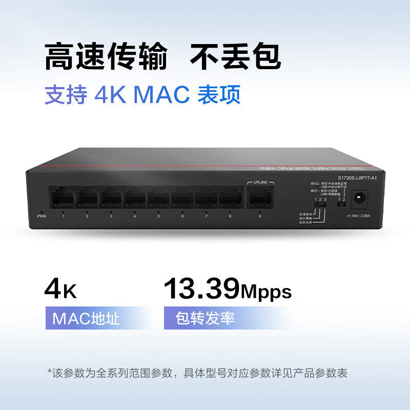 华为数通智选交换机S1730S-L8P1T-A1企业级8口千兆以太网+1上行千兆电无管理POE供电商用高速网络分线转化器