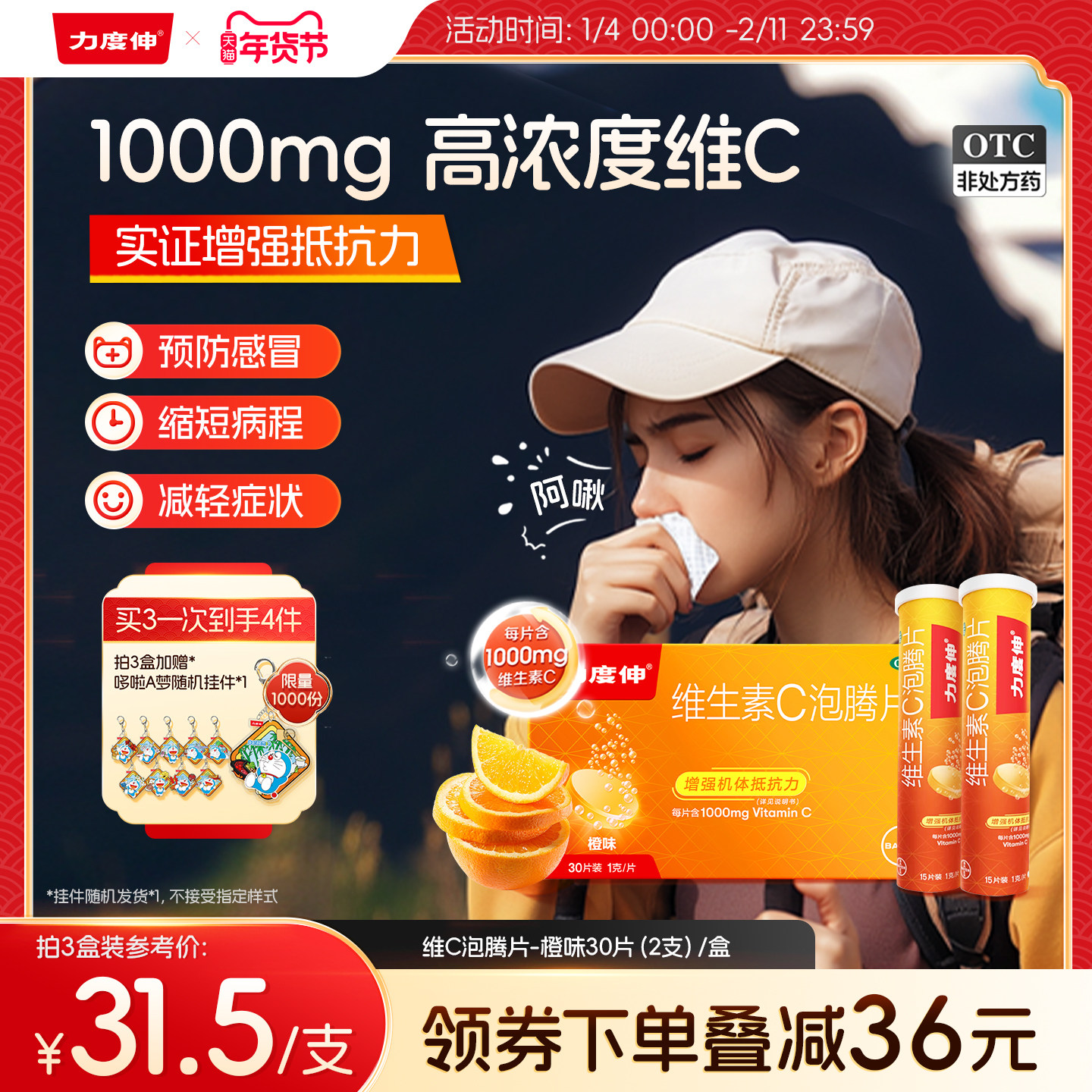 拜耳力度伸维生素C泡腾片30片VC预防感冒维C增强免疫OTC橙味旗舰