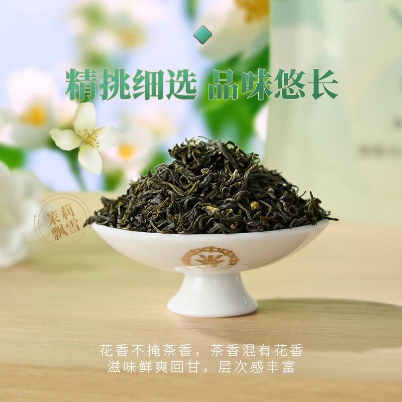 2025新茶狮峰牌茉莉花茶浓香型茉莉飘雪绿茶叶袋装150g官方旗舰店