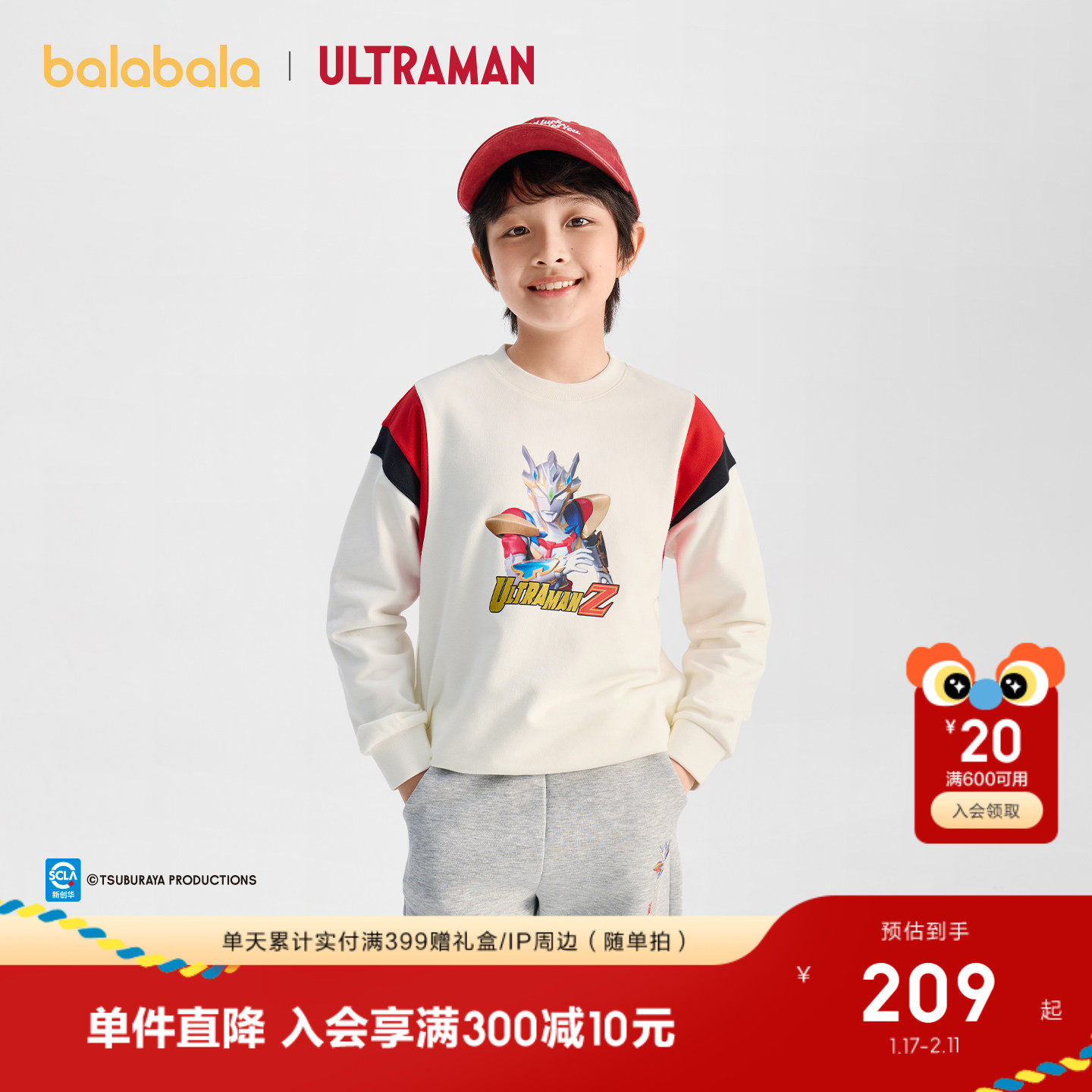 【奥特曼IP商场同款】巴拉巴拉儿童新年卫衣长袖男童20红色拜年服