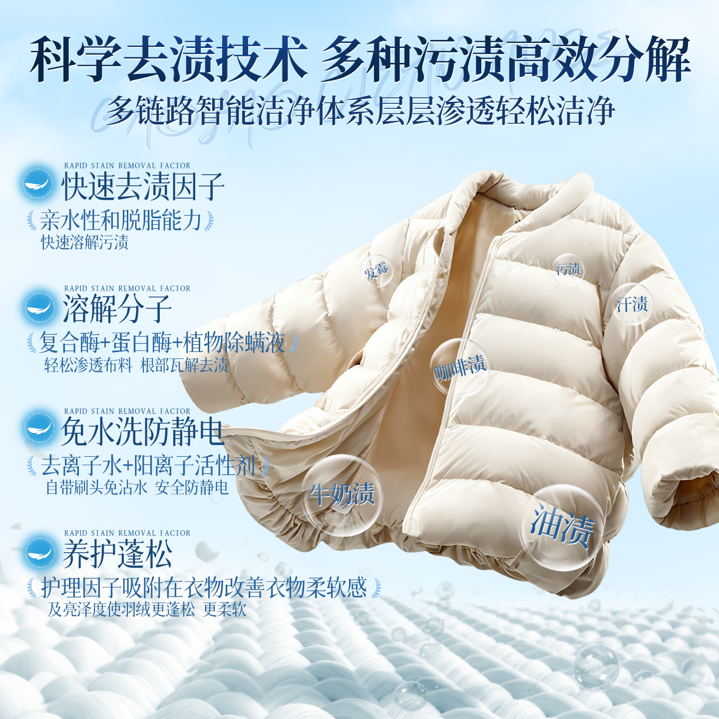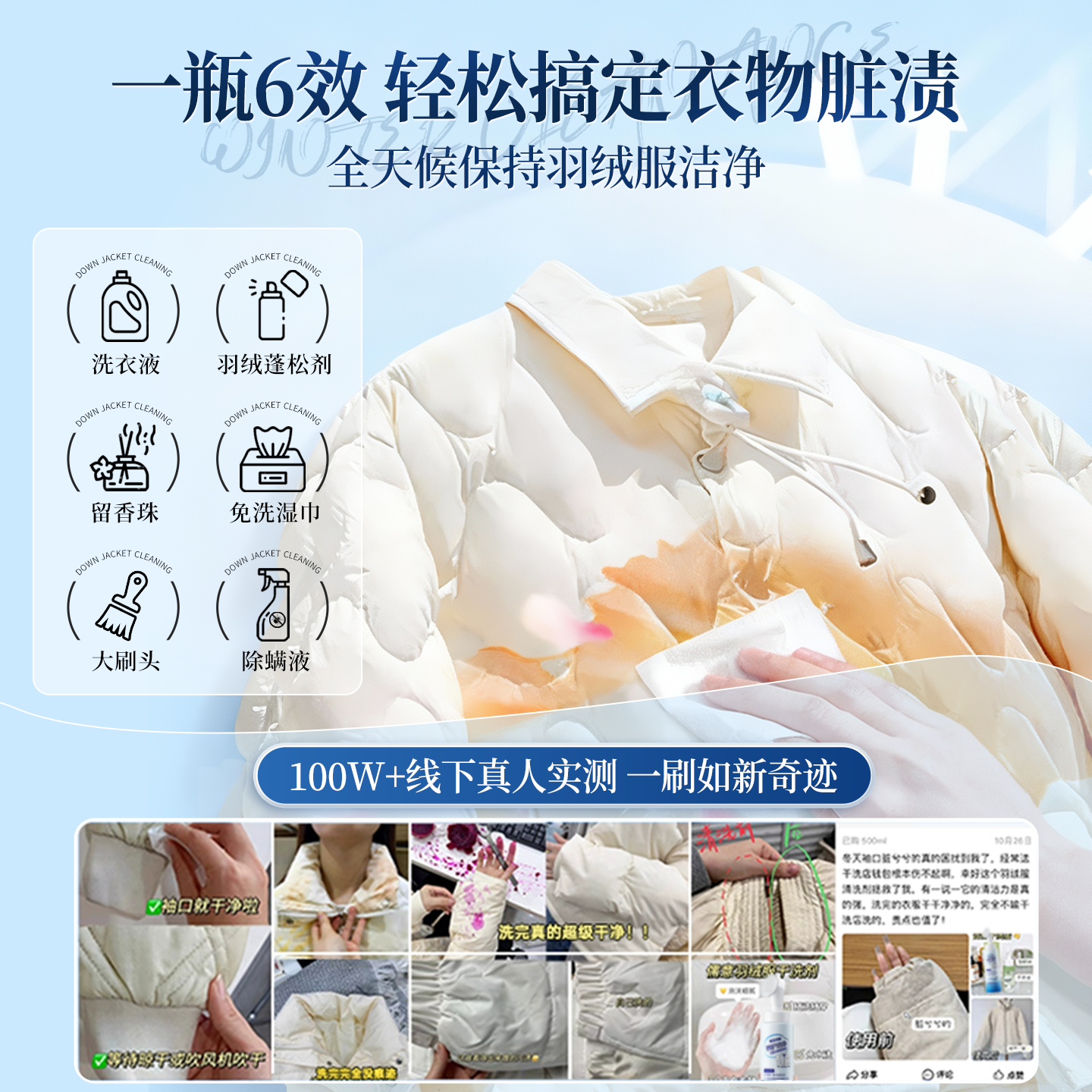 羽绒服清洗剂蓬松洗涤剂清洁专用洗衣液洗衣机洗免干洗去污渍神器