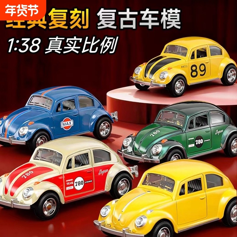 复古大众甲壳虫收藏合金老式汽车模型儿童男孩玩具车怀旧仿真摆件