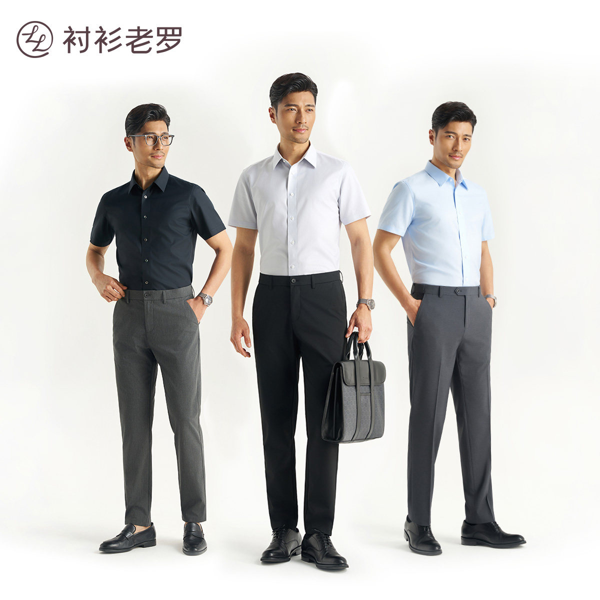 衬衫老罗[总裁七号]高端短袖衬衫含桑蚕丝DP免烫白衬衣255L0F611S