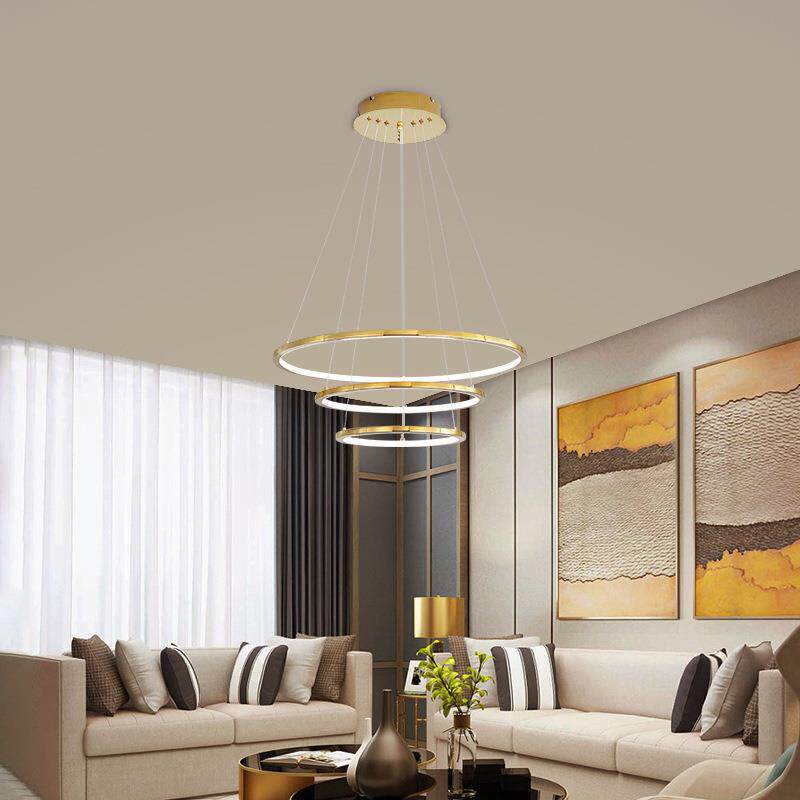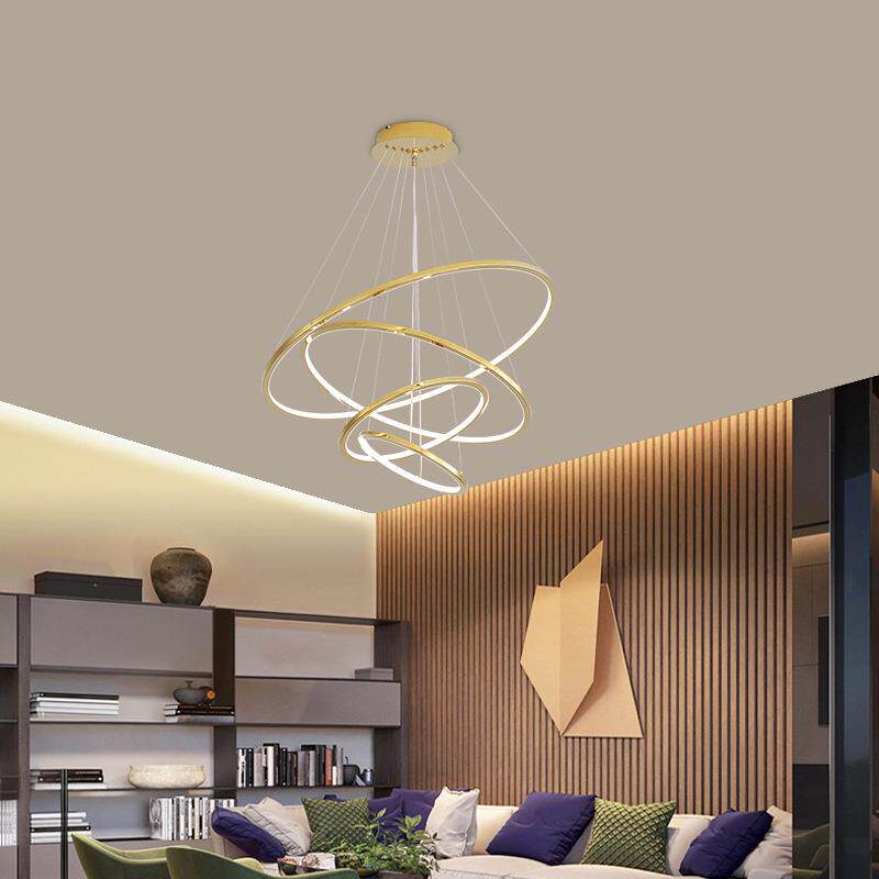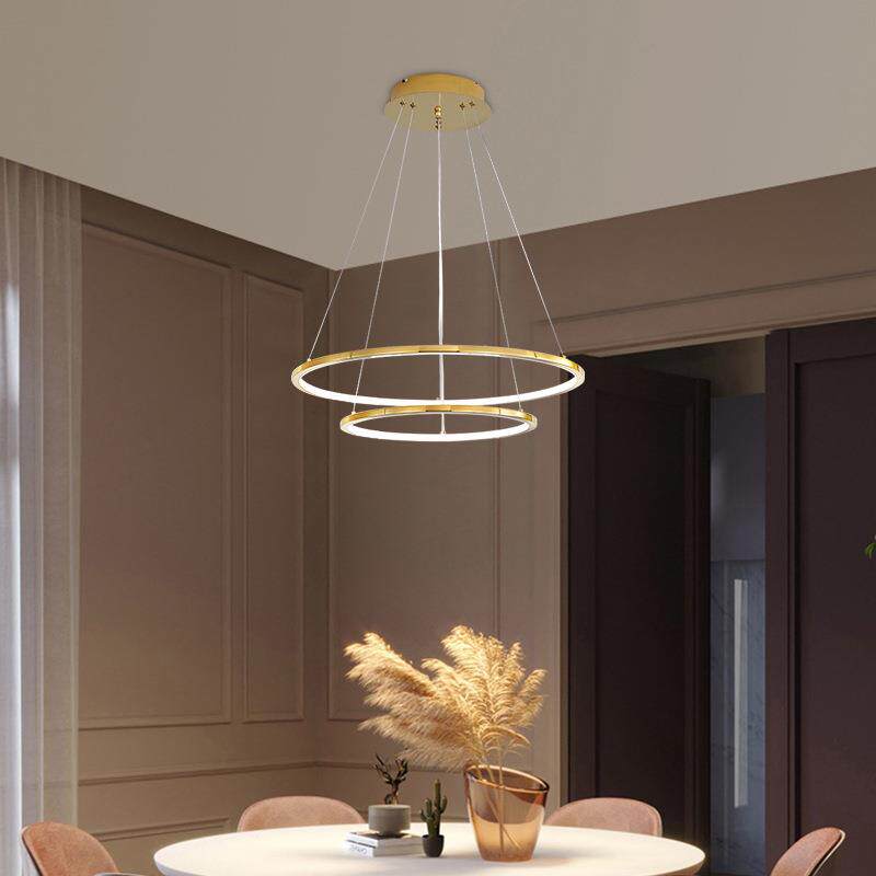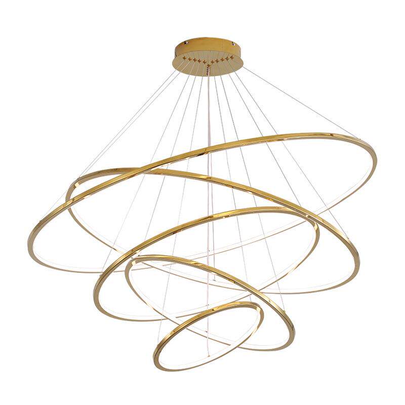 复式楼客厅大吊灯不锈钢轻奢简约别墅loft公寓跃层楼梯间圆环灯具