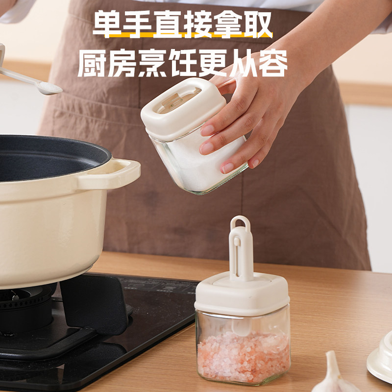 新款伸缩调料盒玻璃厨房调料罐味精密封调味罐家用盐罐调料瓶套装