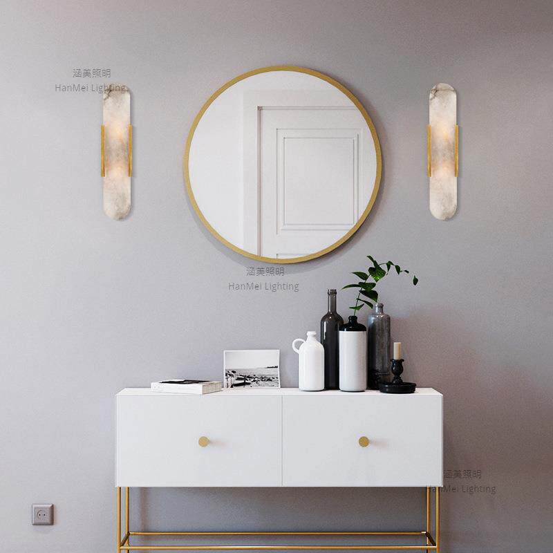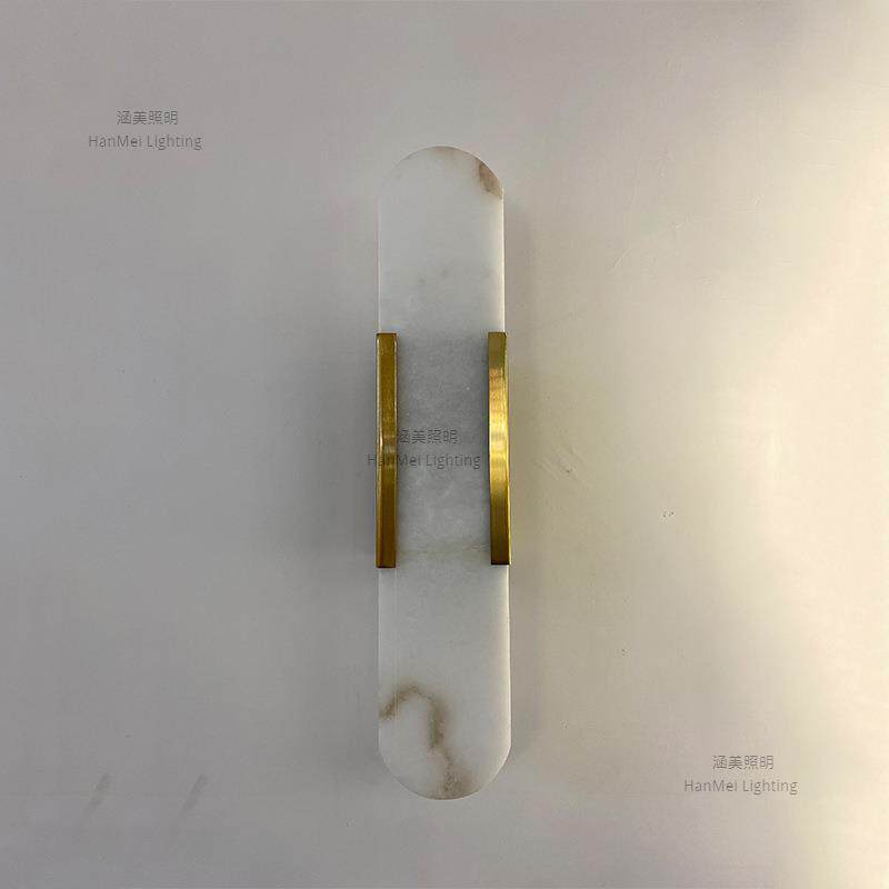 后现代创意天然云石壁灯五金床头卧室书房设计师客厅灯极简楼梯灯