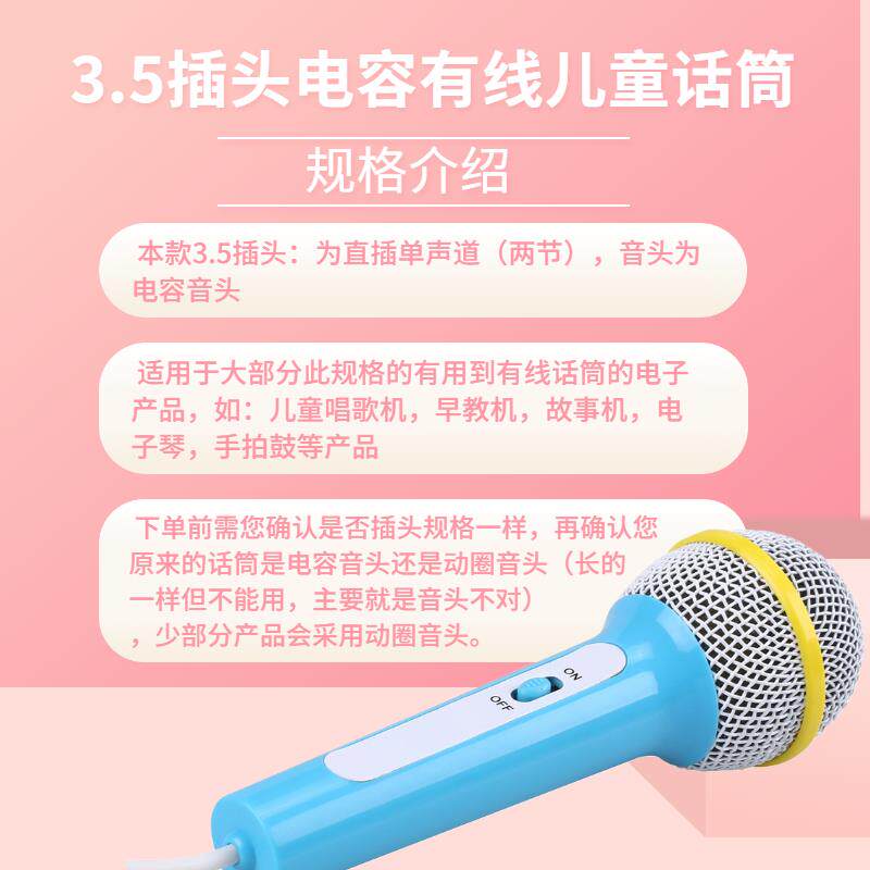 儿童有线麦克风唱歌机视频机电子琴手拍鼓配件火火兔通用话筒