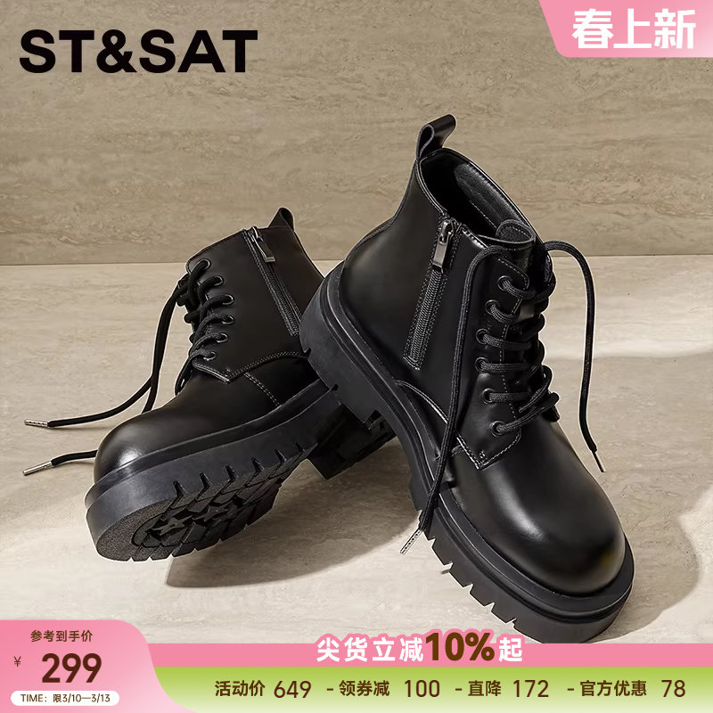 星期六厚底马丁靴男鞋英伦风圆头大头皮鞋短靴高帮德比鞋工装皮靴