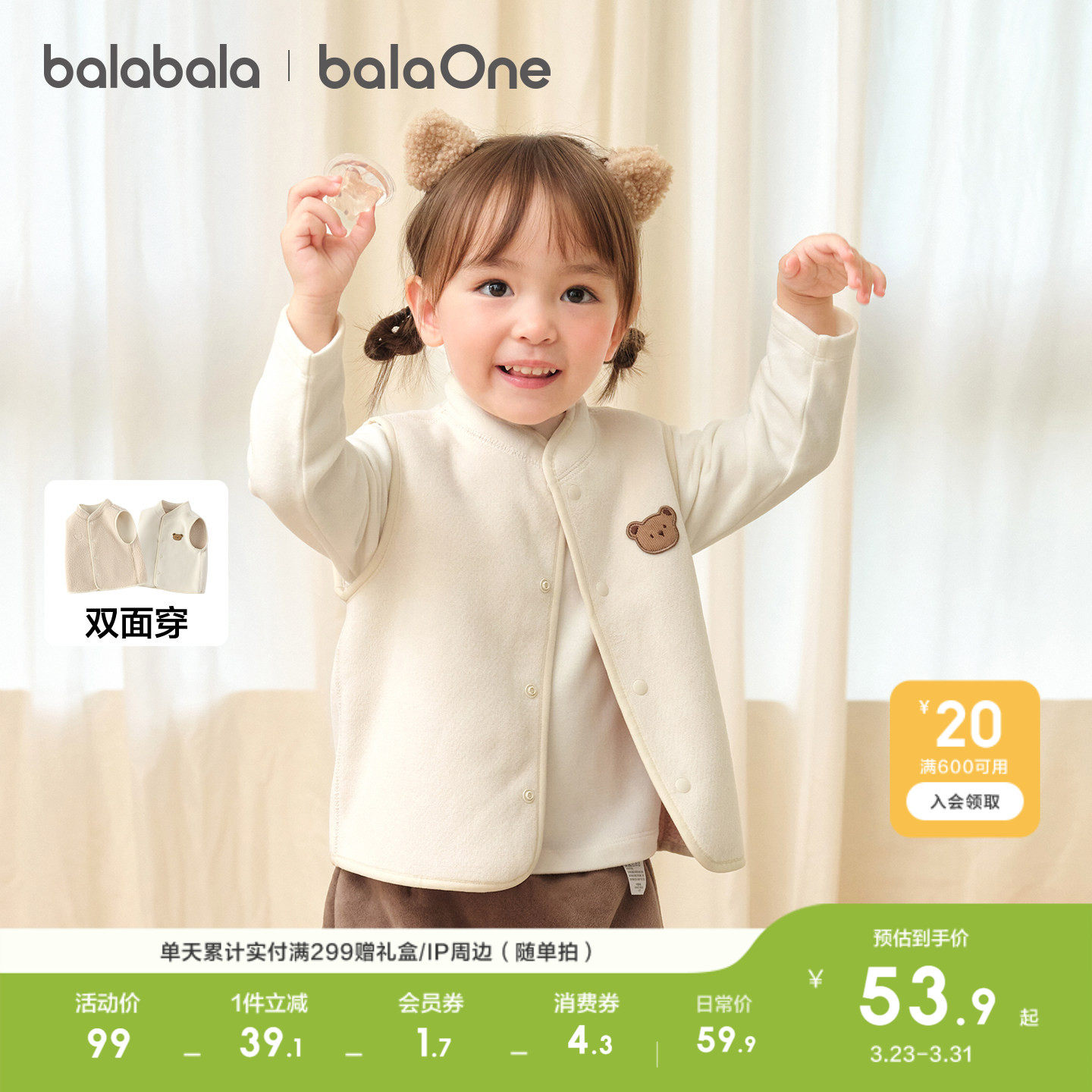 巴拉巴拉童装儿童马甲双面穿衣服男女宝宝秋冬装2026休闲羊羔绒潮