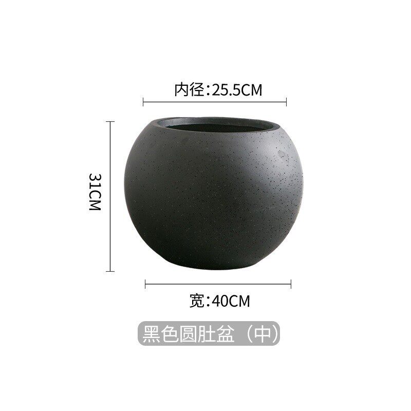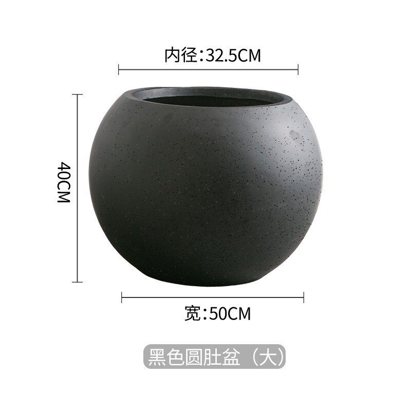 别墅摆件北欧镁泥落地民宿极简圆球型软装特大花器客厅大花盆商场