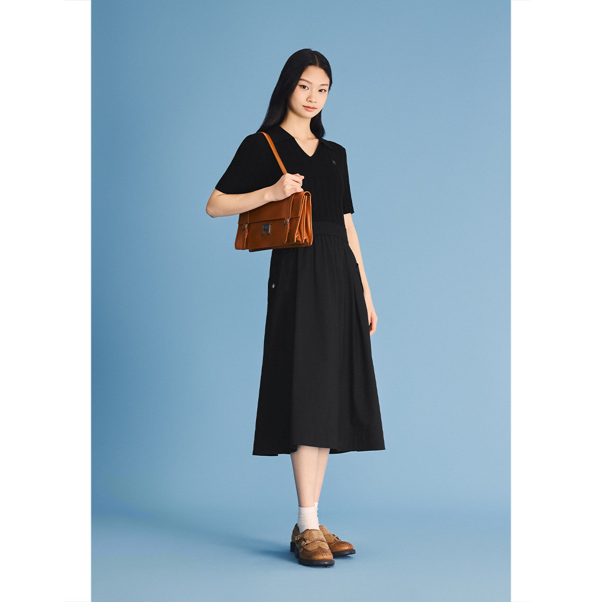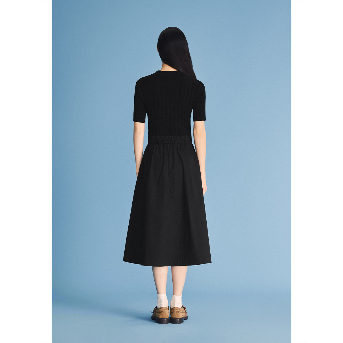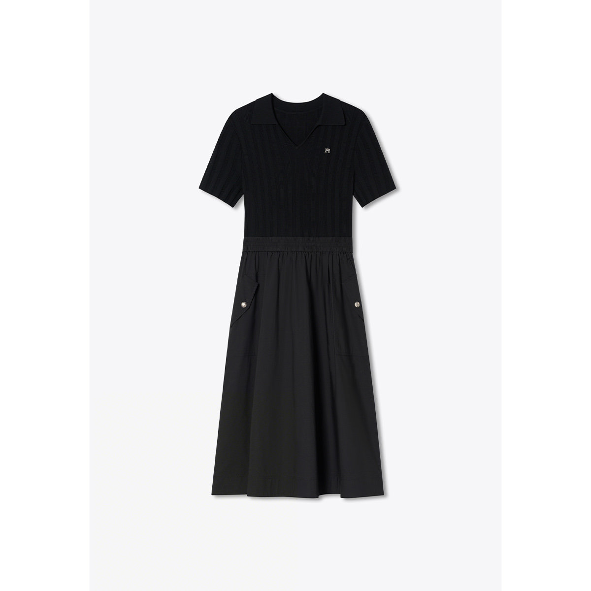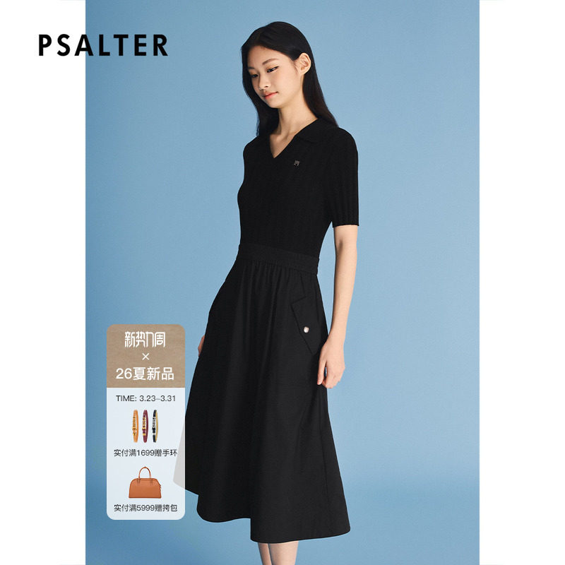 PSALTER诗篇莱赛尔显瘦短袖V领T恤拼接小黑裙2026夏季新款