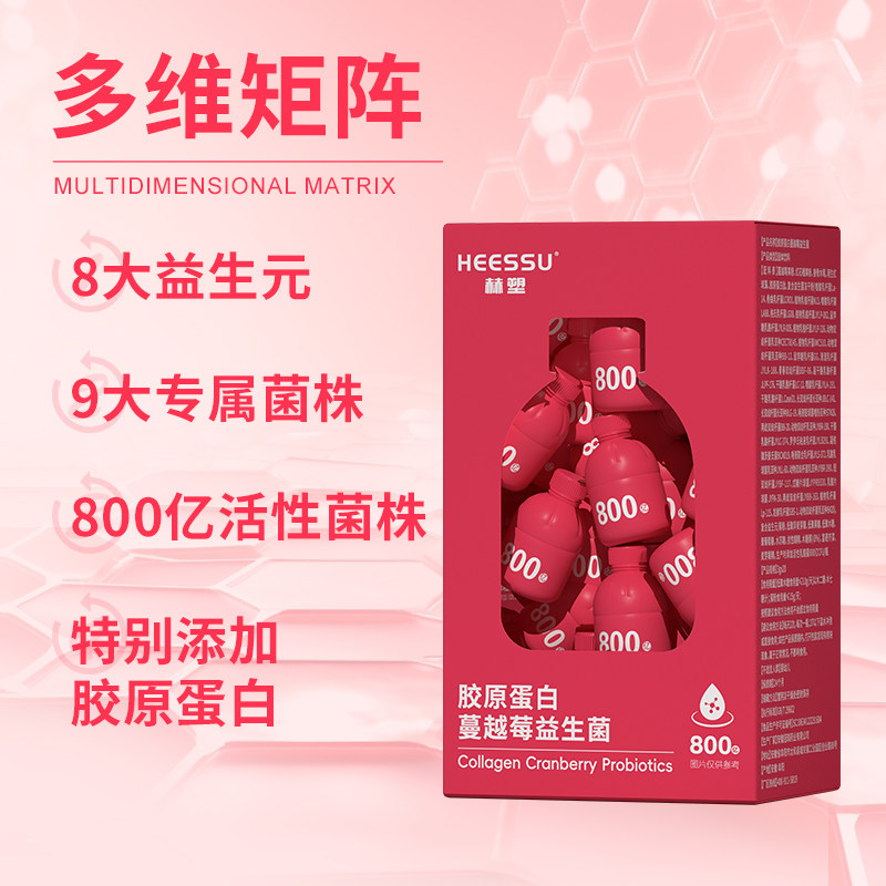 HEESSU胶原蛋白蔓越莓益生菌20瓶/盒800亿高活性菌女性即食小红瓶