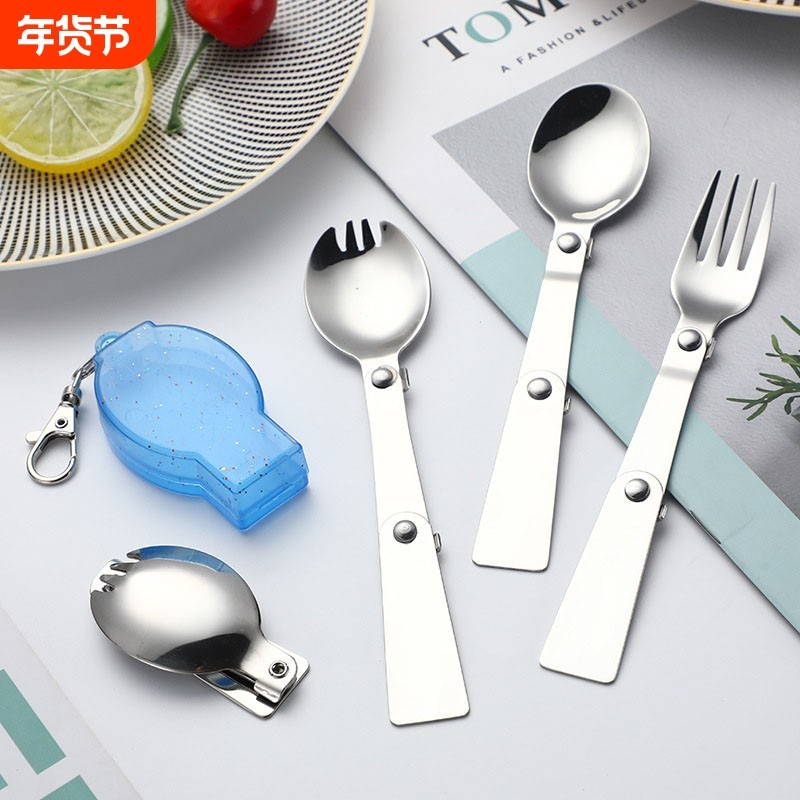 户外旅行便携餐具折叠勺子叉勺汤匙野炊调羹伸缩式旅行随身收纳盒