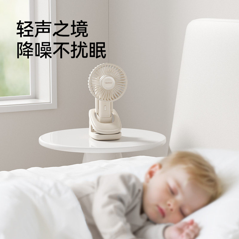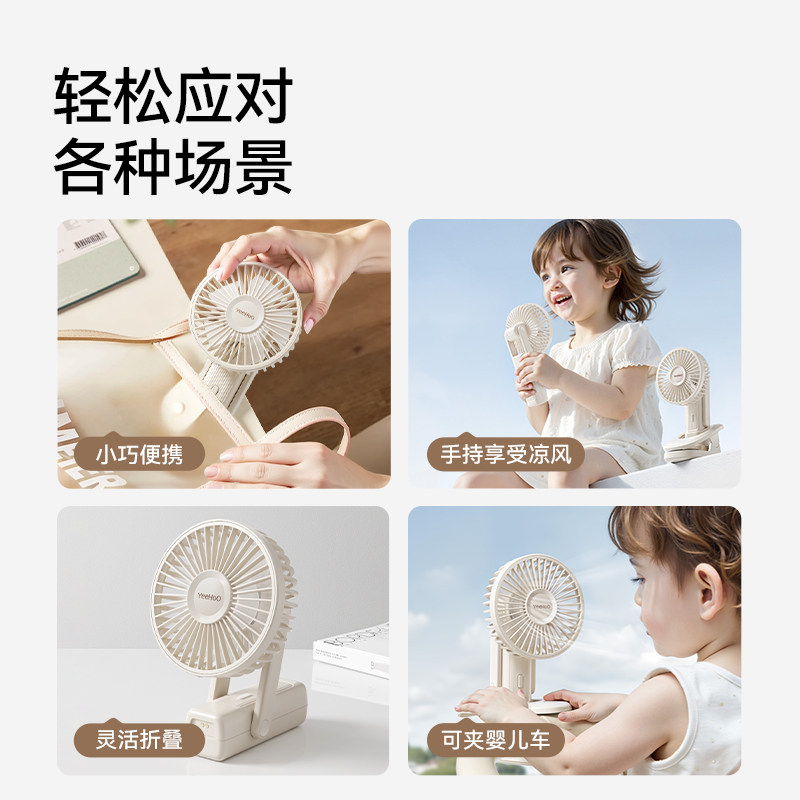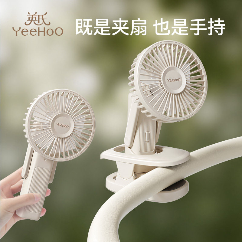 英氏婴儿车小风扇自动摇头USB充电夹子便携式折叠手持户外桌面儿童宝宝手推车婴儿床防夹手轻音小型床头电扇