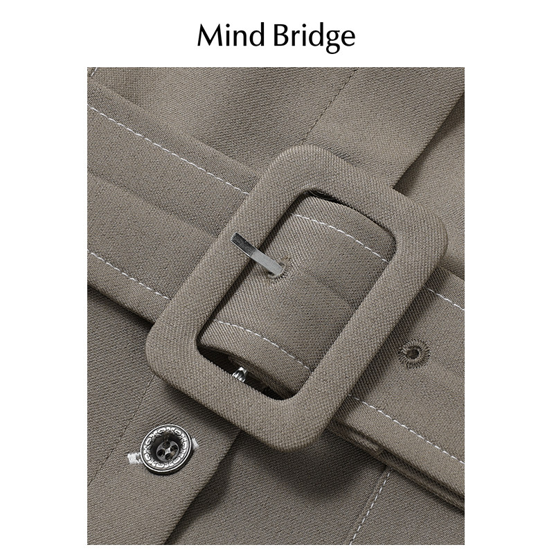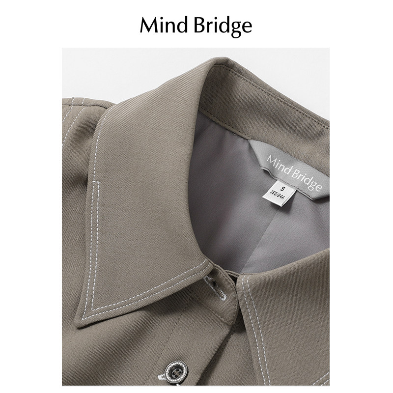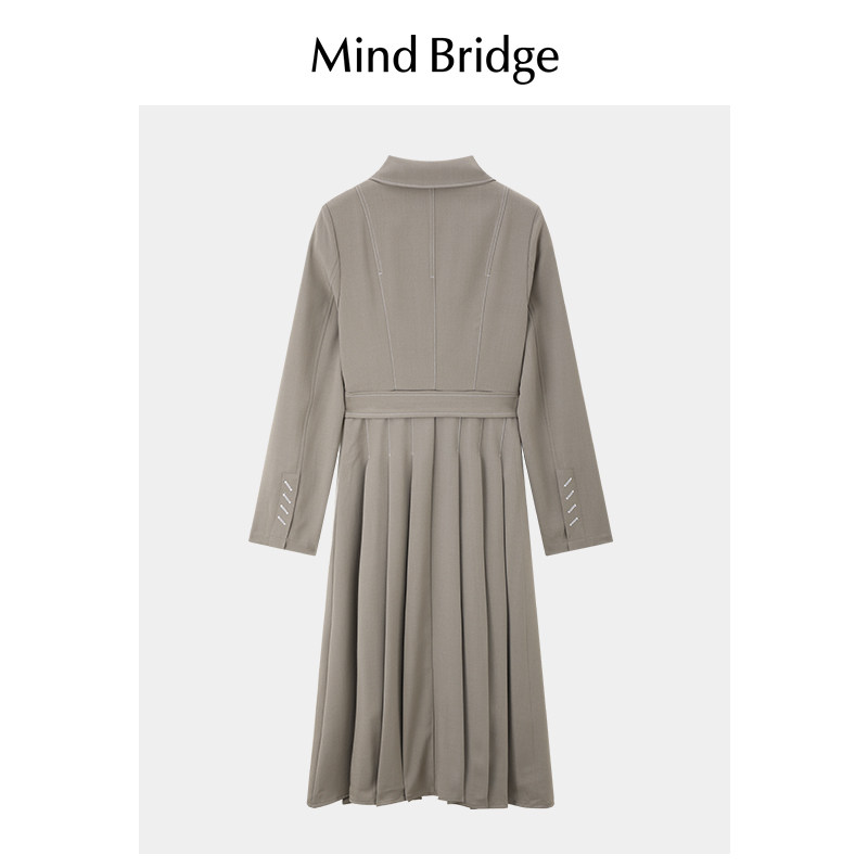 MB MindBridge秋季气质长袖衬衫裙女士通勤收腰长裙翻领连衣裙